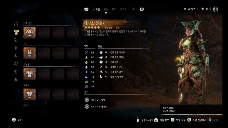 방어구는 일단 탑승에 특화된 테낙스 전술가 추천드리고요.