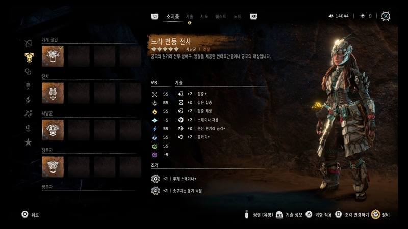 방어구는 노라 천둥 전사 추천드립니다.