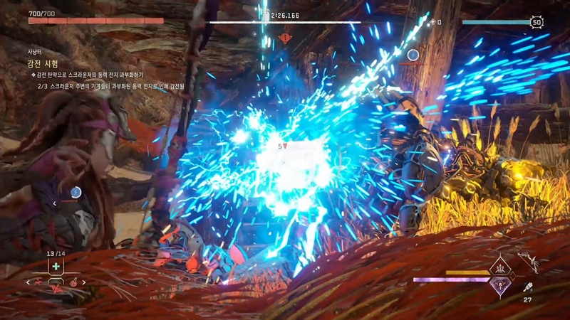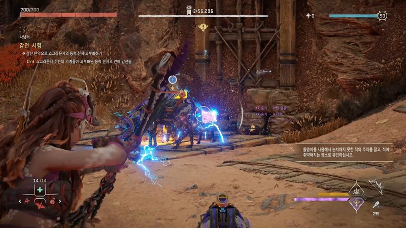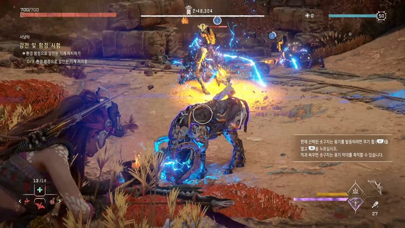 포커스를 켜서 사냥터를 살펴보면 함정들이 많이 있는데, 기계들이 근처에 왔을 때 감전 시킨 다음 함정을 발동해서 처치해야 합니다.