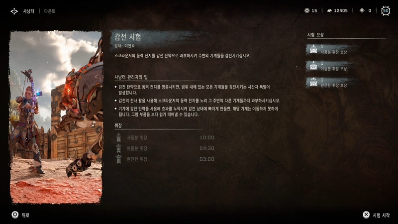 사냥터로 내려가지 않으면 시험 타이머가 작동하지 않습니다.