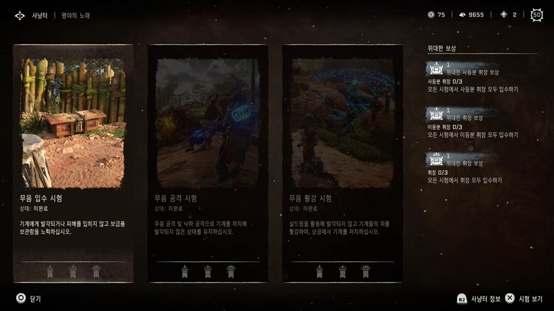 [호라이즌 포비든 웨스트] 모든 사냥터 클리어(+전설 무기 땜장이의 자부심 획득)