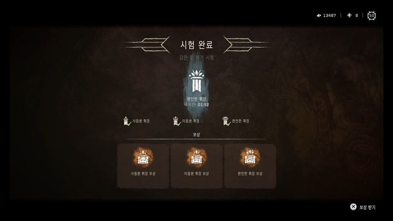 그리고 사냥터 컨텐츠의 최종 보상을 수령하려면 모든 시험에서 완전한 휘장을 달성해야 합니다.