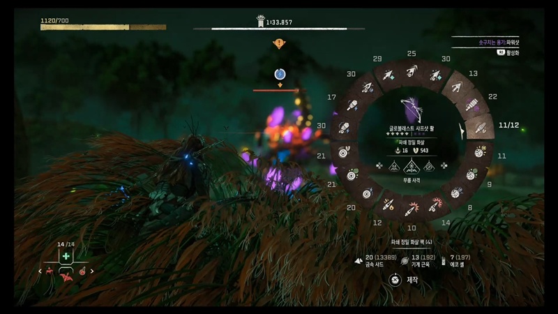 위치만 정확히 맞으면 한 방에 떨어뜨릴 수 있는 파쇄 정밀 화살을 추천합니다.