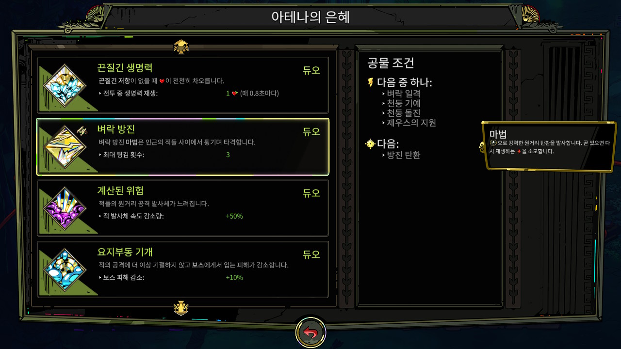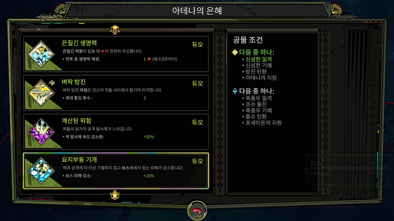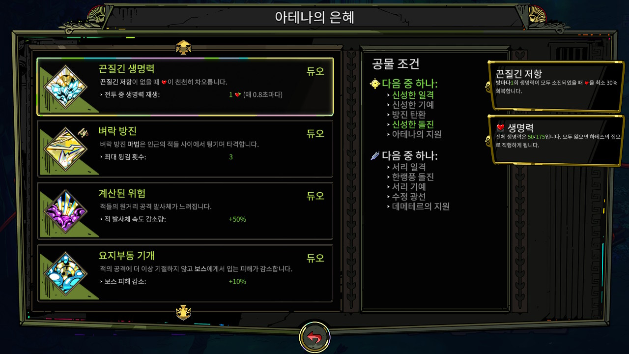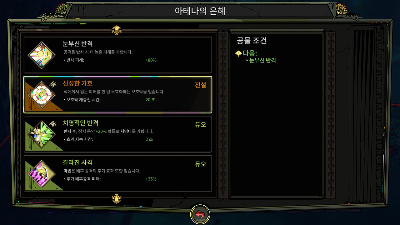 오늘은 하데스 은혜 중 아테나의 은혜에 대해 소개해 드리겠습니다.