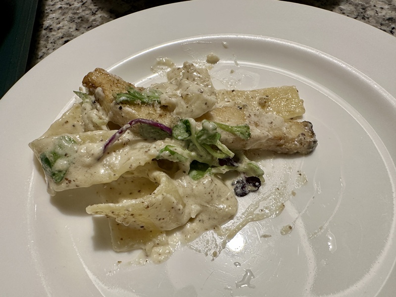 꾸덕하고 면 익힘도 좋았습니다. 근대 들깨 파스타인데 들깨가 별로였어요...