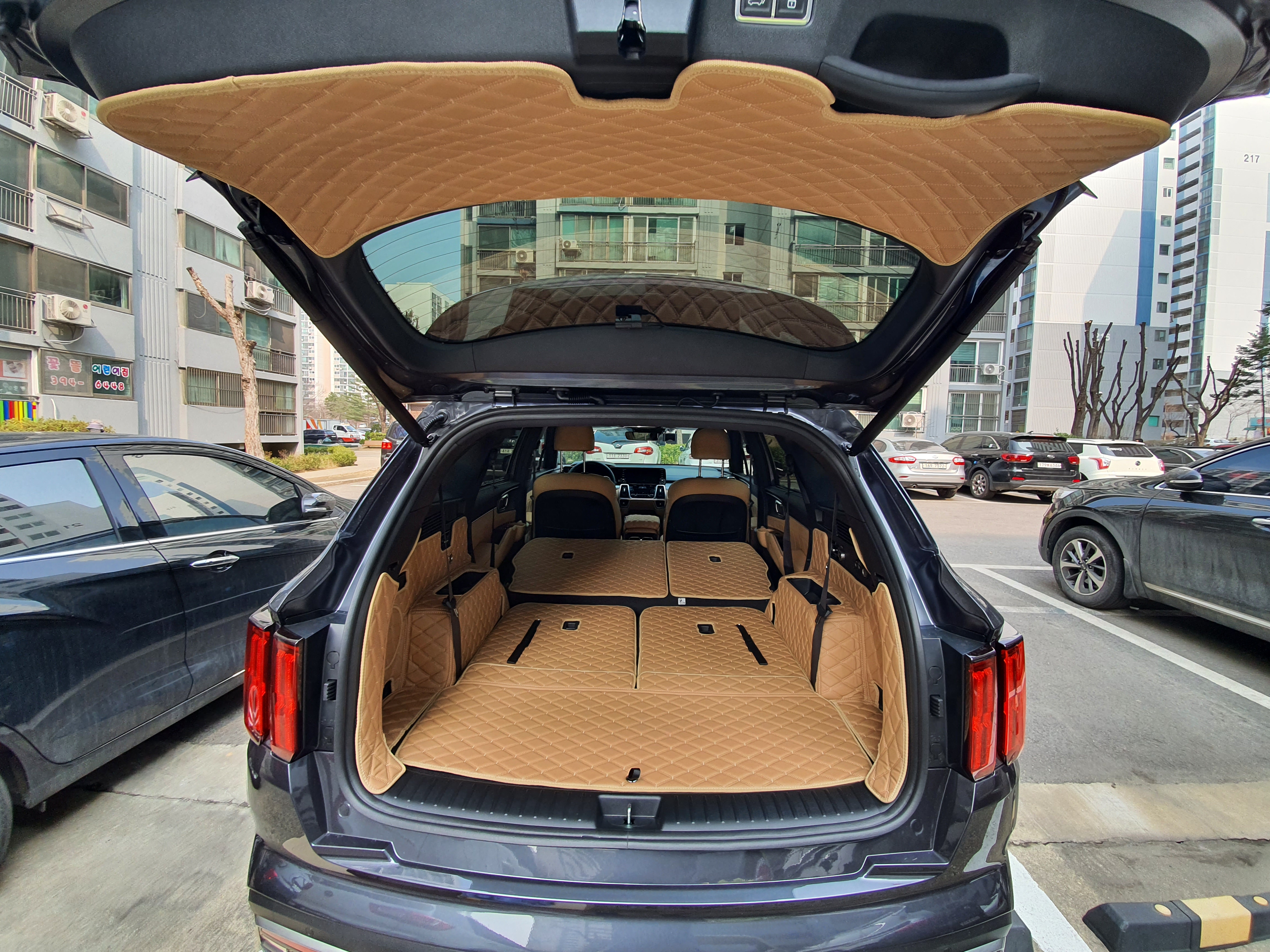 요새 차박이 유행인데 잘 아시겠지만 요즘 SUV들은 저렇게 2열을 완전히 접을 수 있게 되어 있는 경우가 많습니다. 쏘렌토도 마찬가지구요.