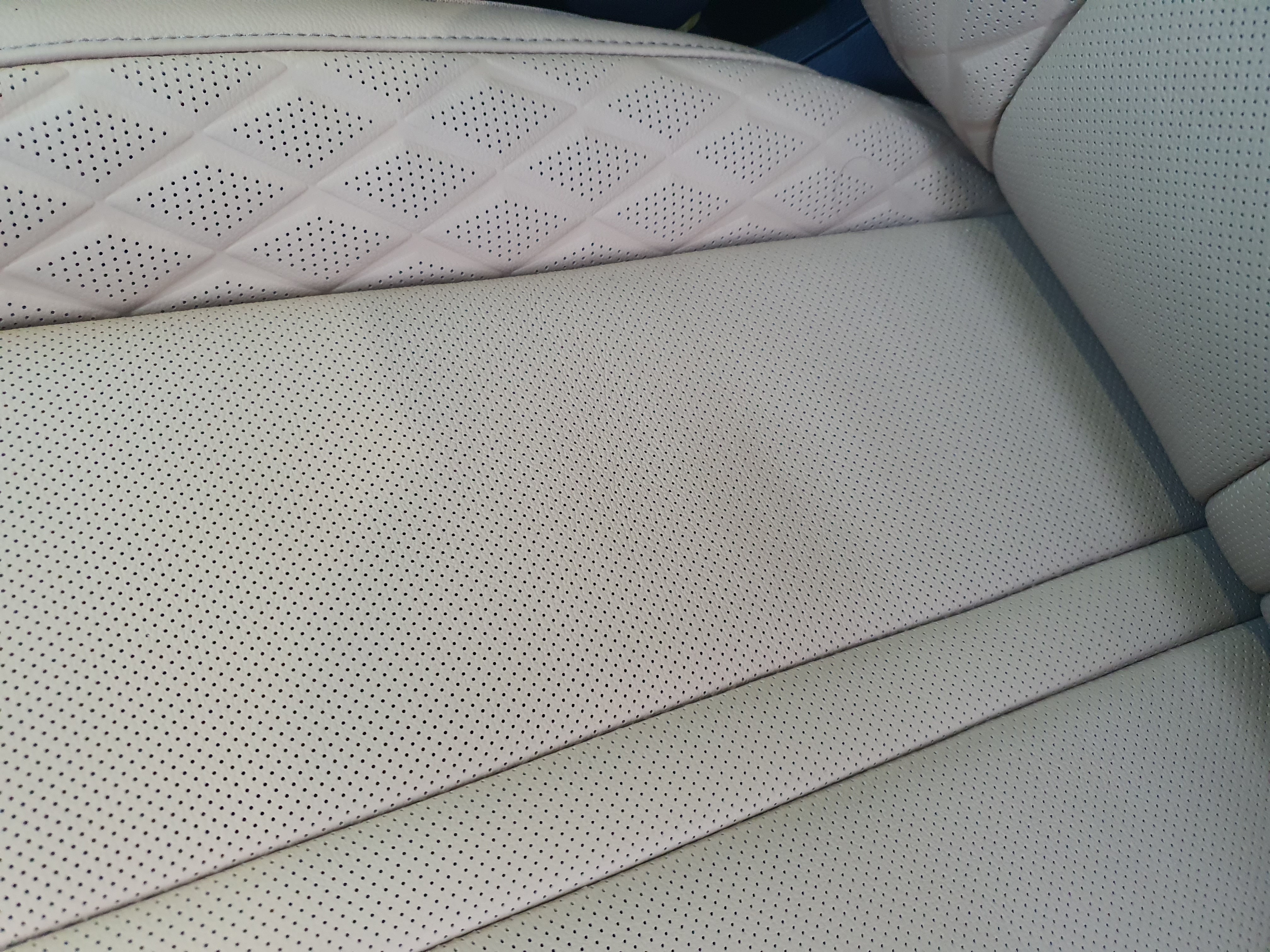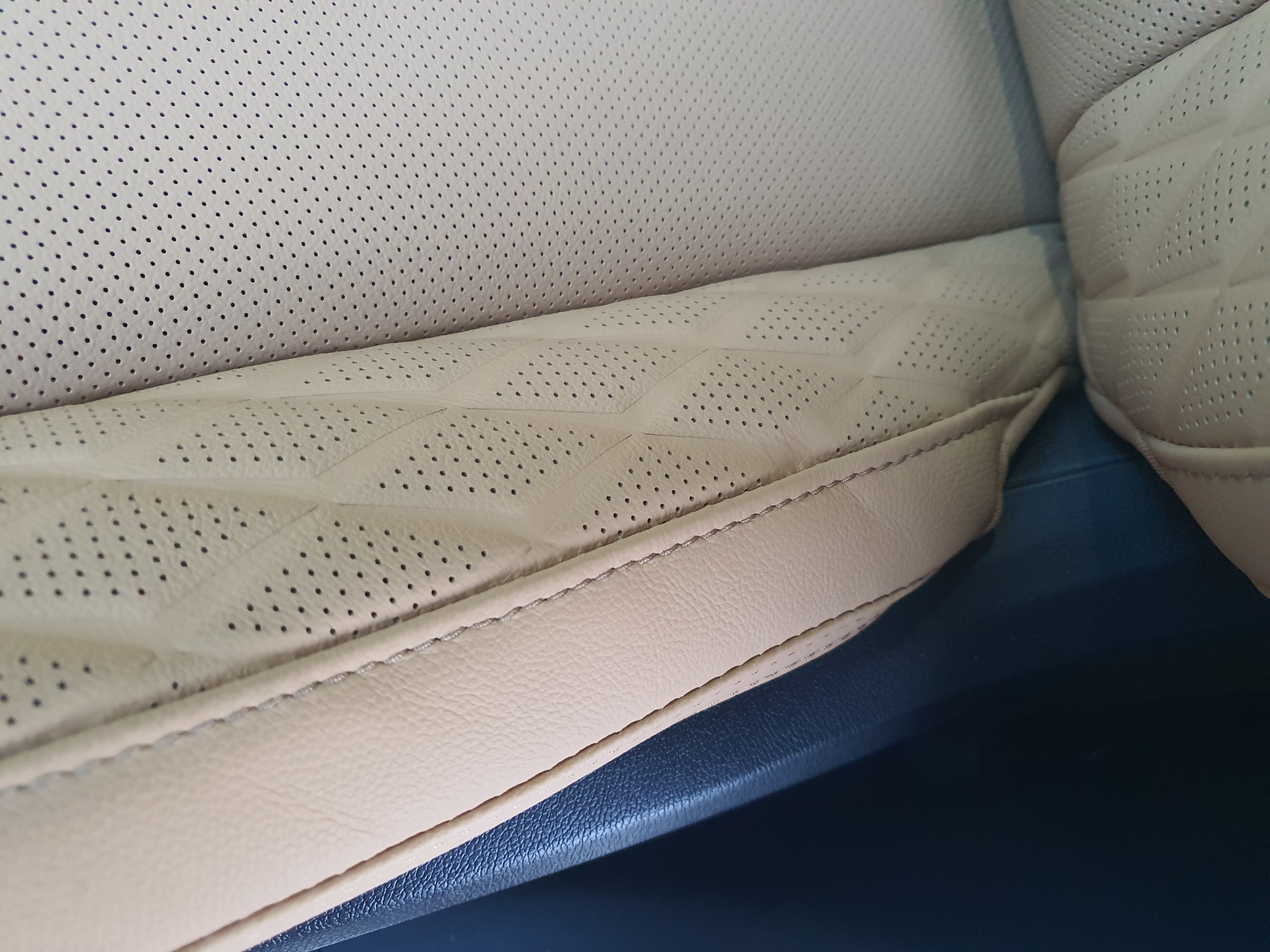 여기는 운전석 도어 쪽 사이드 부분입니다. 제가 타고 내릴 때 허벅지가 닿는 곳이죠. 이 부분도 조금 주름이 졌네요.