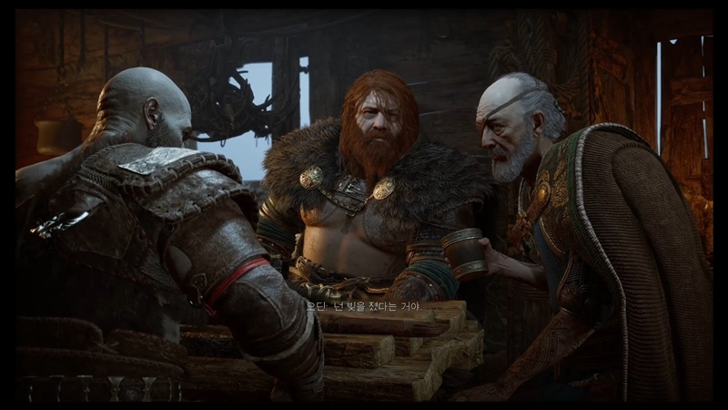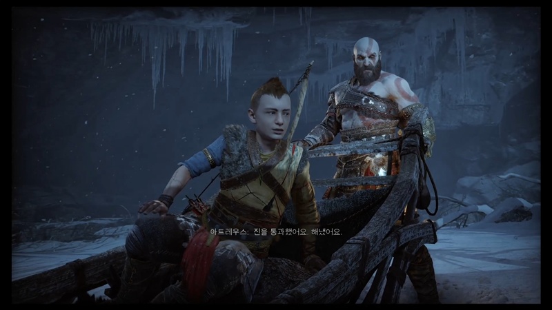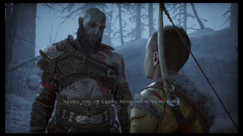 집으로 돌아온 크레토스는 아트레우스와 미미르 모두 무사한 걸 확인합니다.