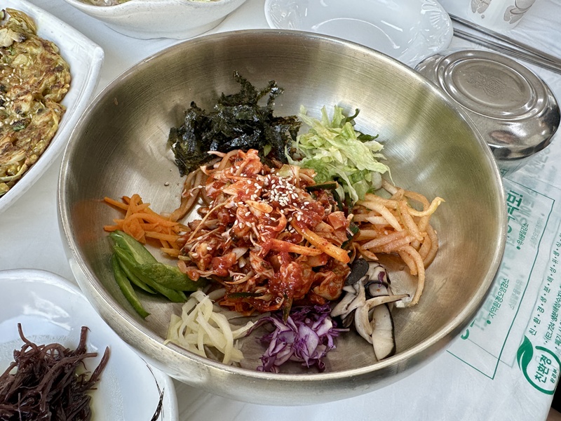 비빔밥에는 기본적으로 조개국이 나오고요. 약간은 슴슴한게 좋았습니다.