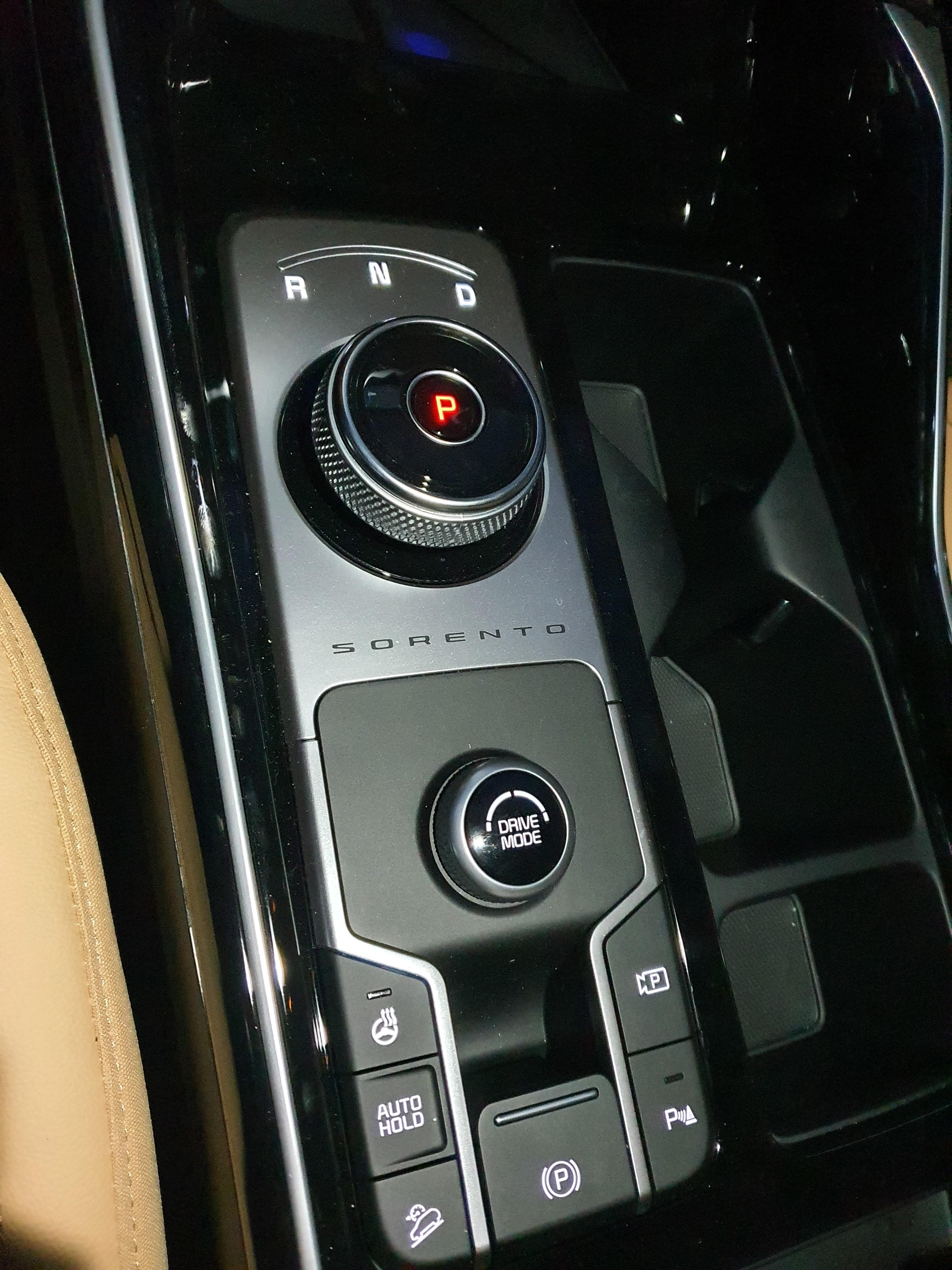 쏘렌토 하이브리드의 드라이브 모드는 변속기 조그 밑에 있는 조그를 돌려서 변경하실 수 있습니다.