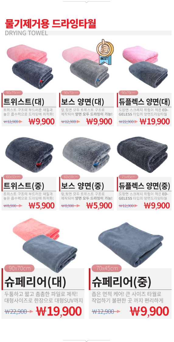 세차가 끝난 후 차량을 닦을 때 사용하는 드라잉 타월입니다.