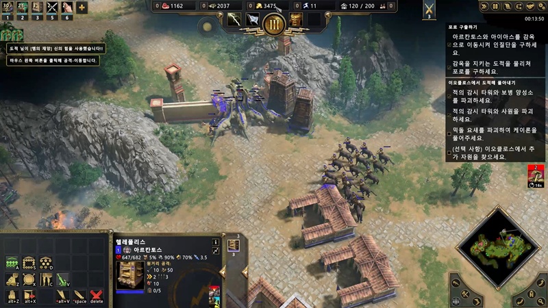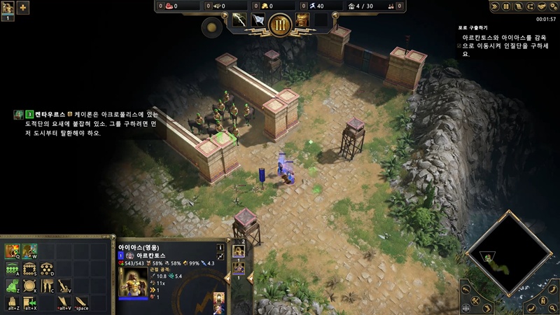 이제 오른쪽으로 내려와서 적의 감시타워와 보병 양성소를 파괴해야 합니다.