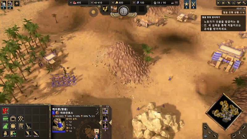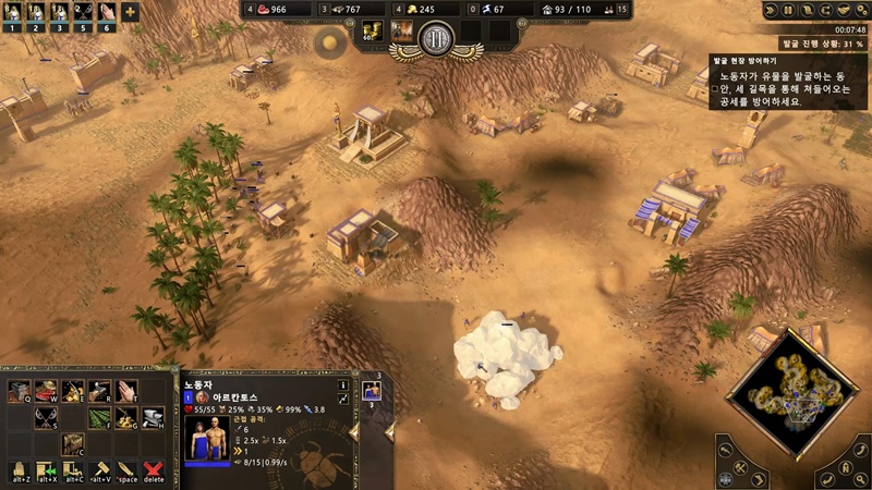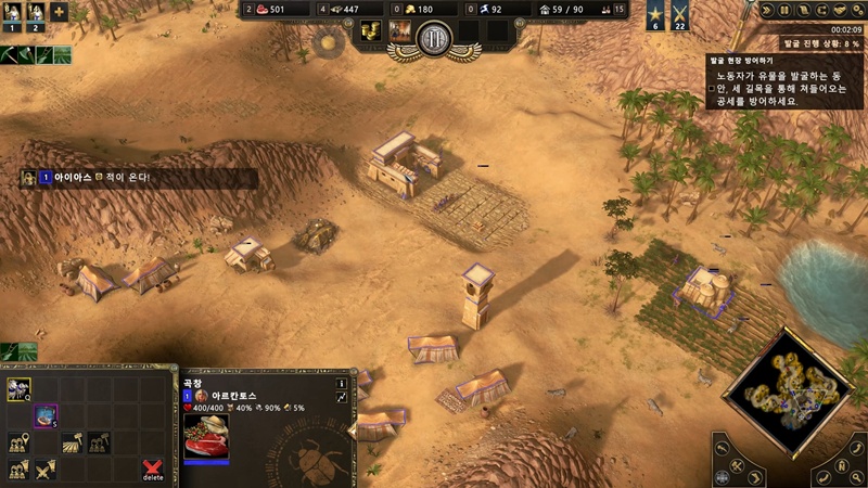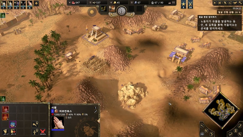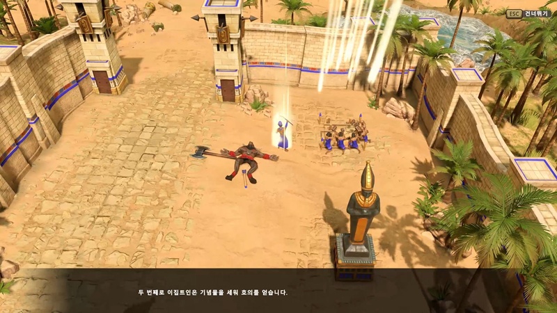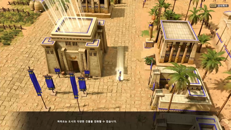 일단 파라오라는 특수 영웅 유닛이 있는데, 파라오는 건물을 강화해서 건설, 생산, 업그레이드 속도 등을 올릴 수가 있습니다.