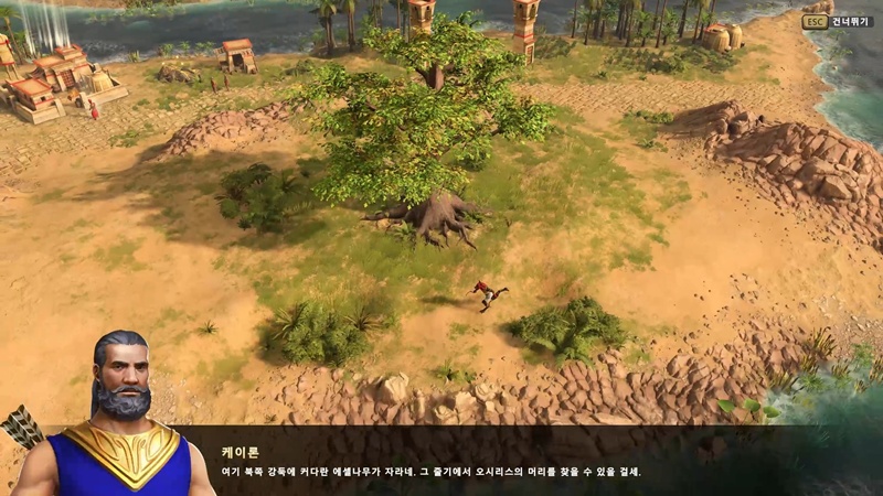 오시리스의 머리 조각이 저 에셀나무 밑에 숨겨져 있는 것 같습니다.