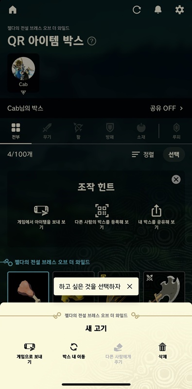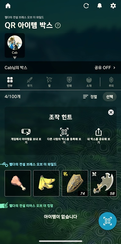 저장된 아이템들은 QR코드를 통해 다른 사람과 공유도 가능하고요.(공유할 사람이 없..ㅠ)
