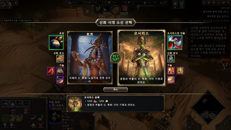 기지가 두 개, 파라오도 두 명, 그래서 오시리스 골랐습니다.