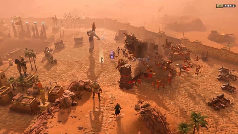 적들이 어느 정도 정리되면 수레들을 슬금슬금 피라미드 쪽으로 가져와 주세요.