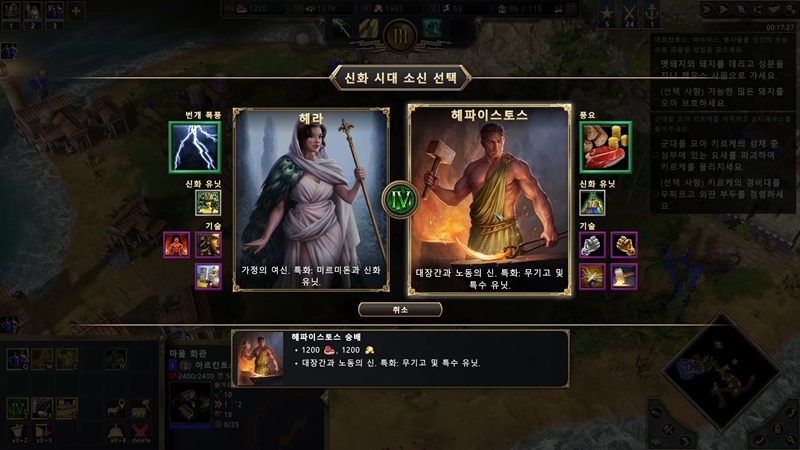 신화 시대 소신은 자원 수급이 가능한 헤파이스토스 고르겠습니다.