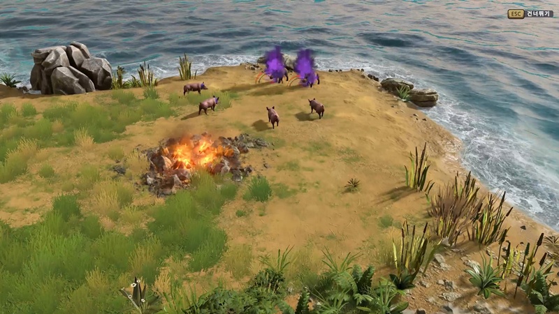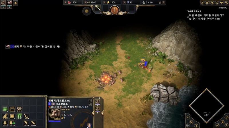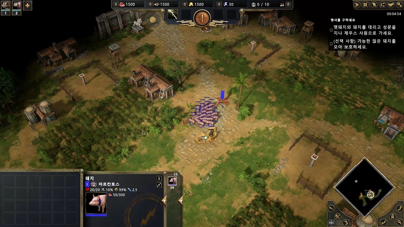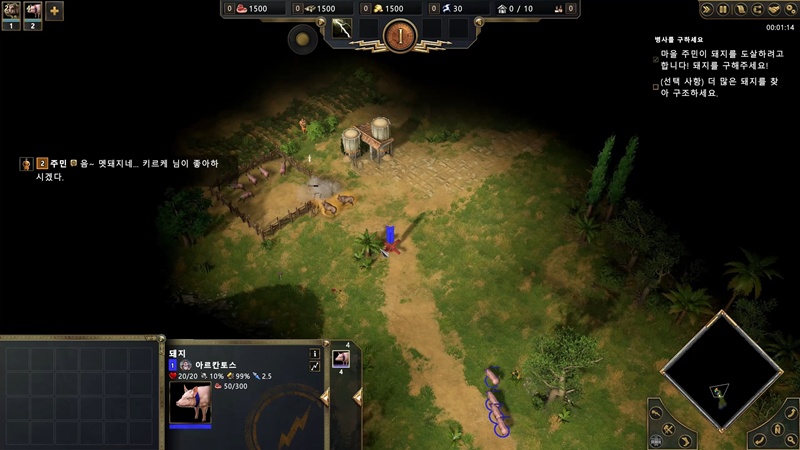 주민 외에는 돼지들을 공격하는 적이 없으니 북쪽으로 쭉 이동해 주세요.