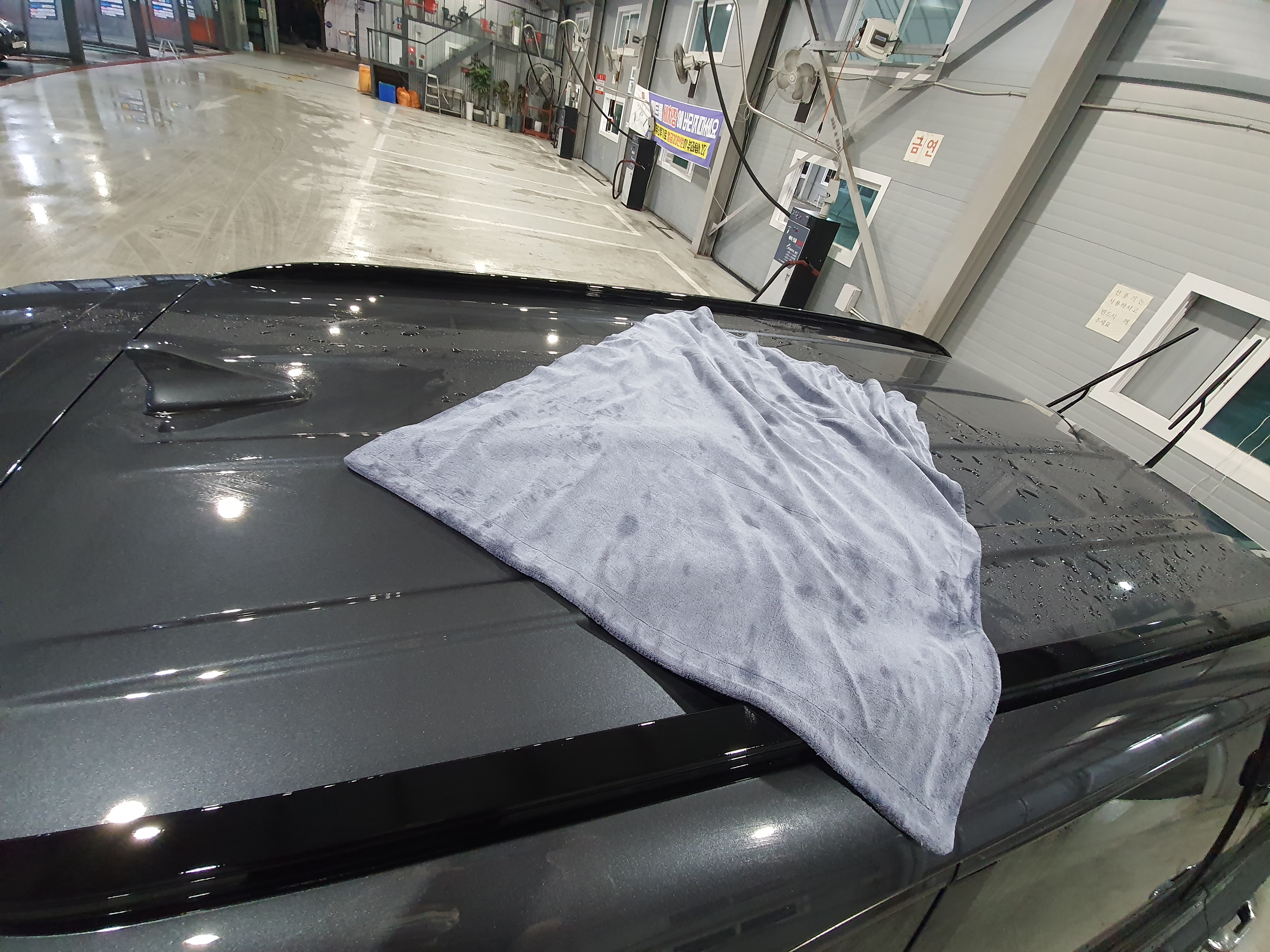 고압수가 끝나고 물기를 닦기 위해 드라잉 존으로 이동했습니다.