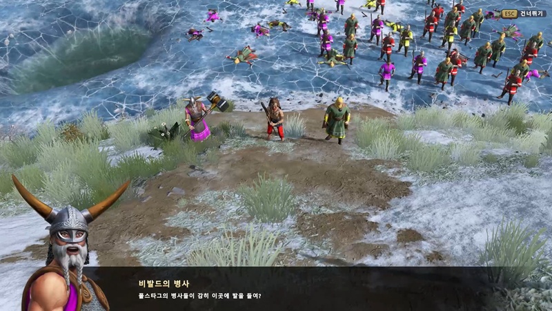 노르드인들이 싸우고 있는 전장에 도착한 일행들은 스쿨트의 깃발을 흔듭니다.