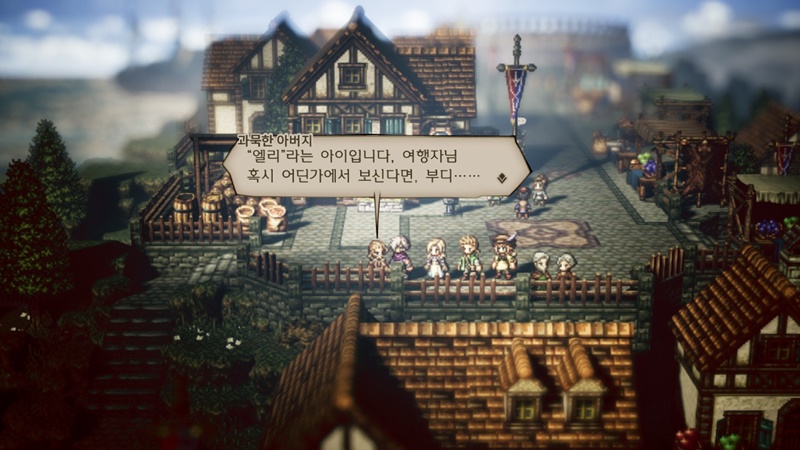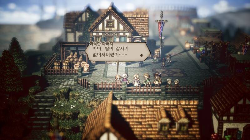 빅터 할로우 여관 앞에서 과묵한 아버지를 만날 수 있습니다.