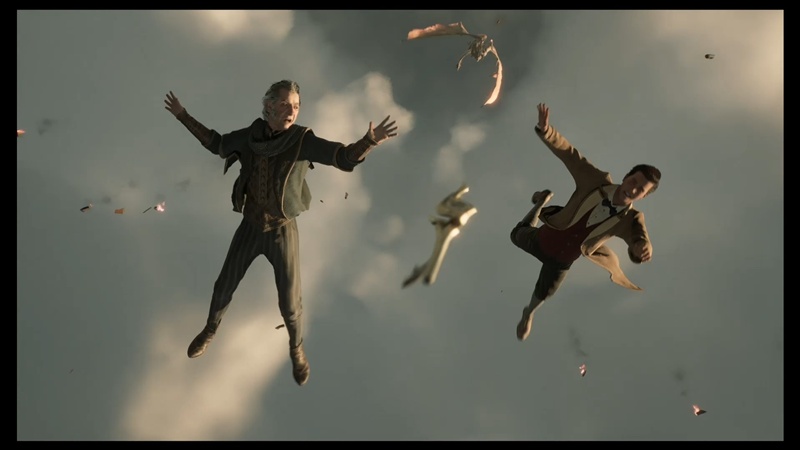 펜시브 속에서 두 명의 마법사가 특별한 사람만이 발견할 수 있게끔 주인공이 왔던 길을 설계하는 모습을 볼 수 있습니다.
