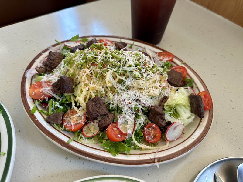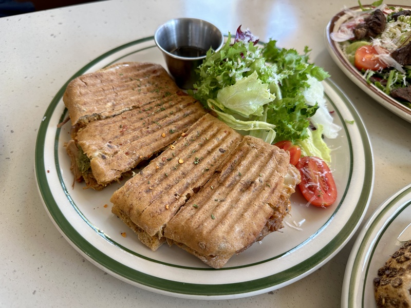 호밀빵, 미나리 찹스테이크 파스타, 풀드포크 파니니를 주문했습니다.