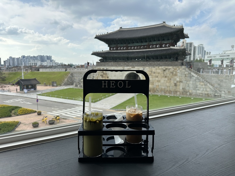 이 카페의 가장 큰 장점은 통창을 통해 화성 장안문을 바로 앞에서 볼 수 있다는 점입니다.