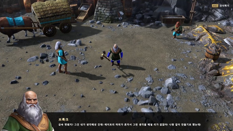 브록크와 황소 마차 네 대를 동굴로 보내면 미션 클리어.