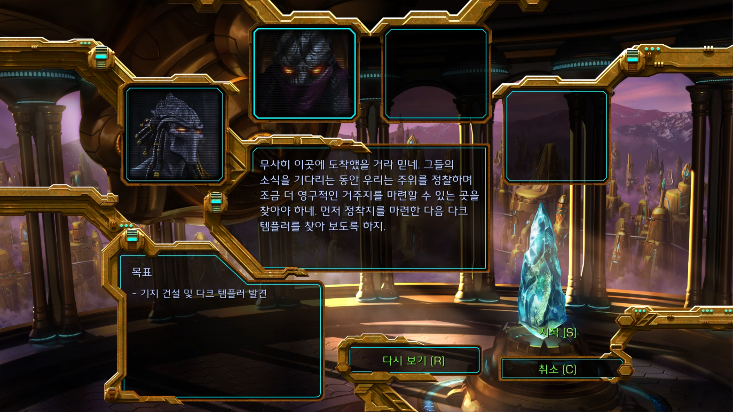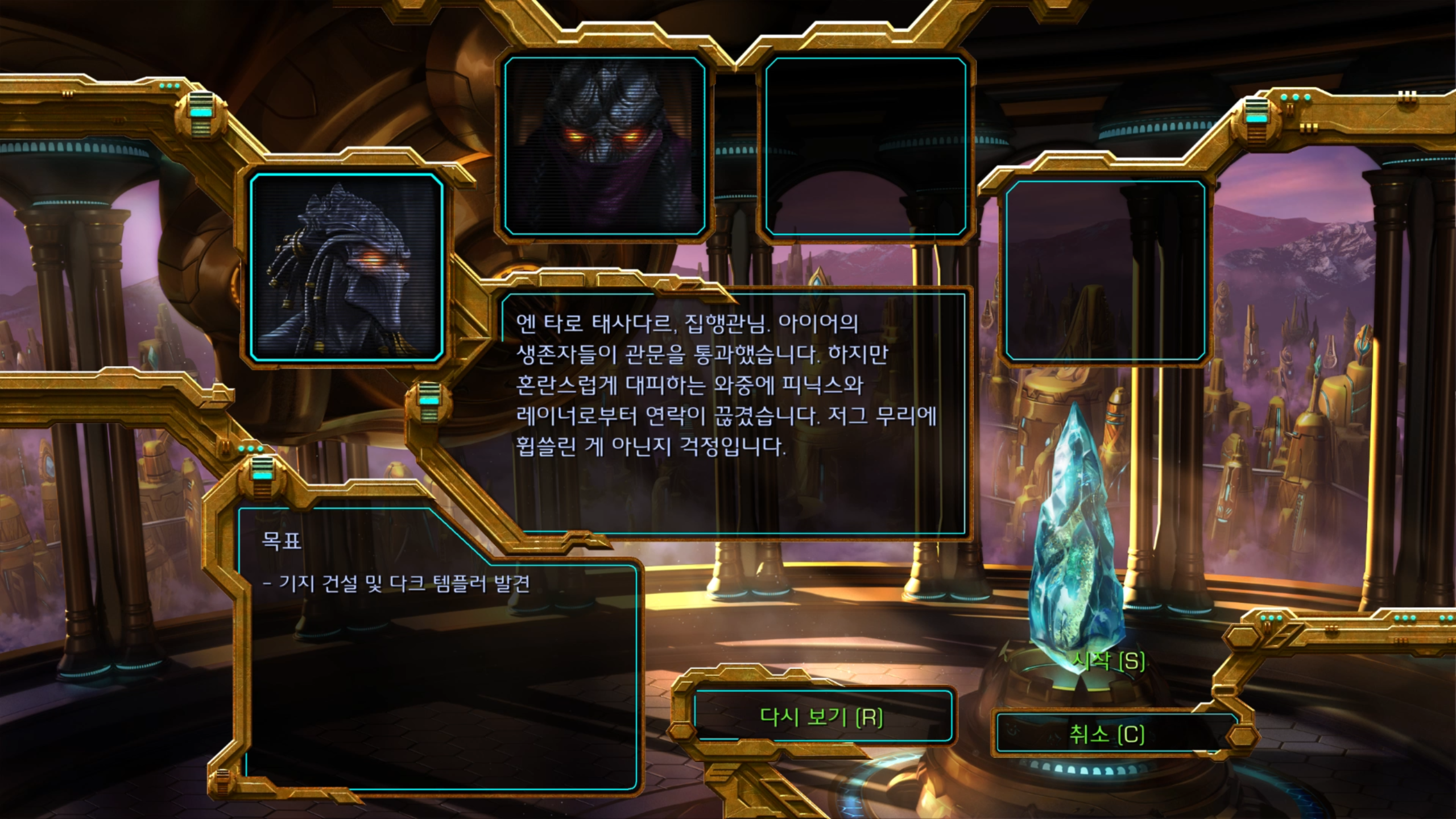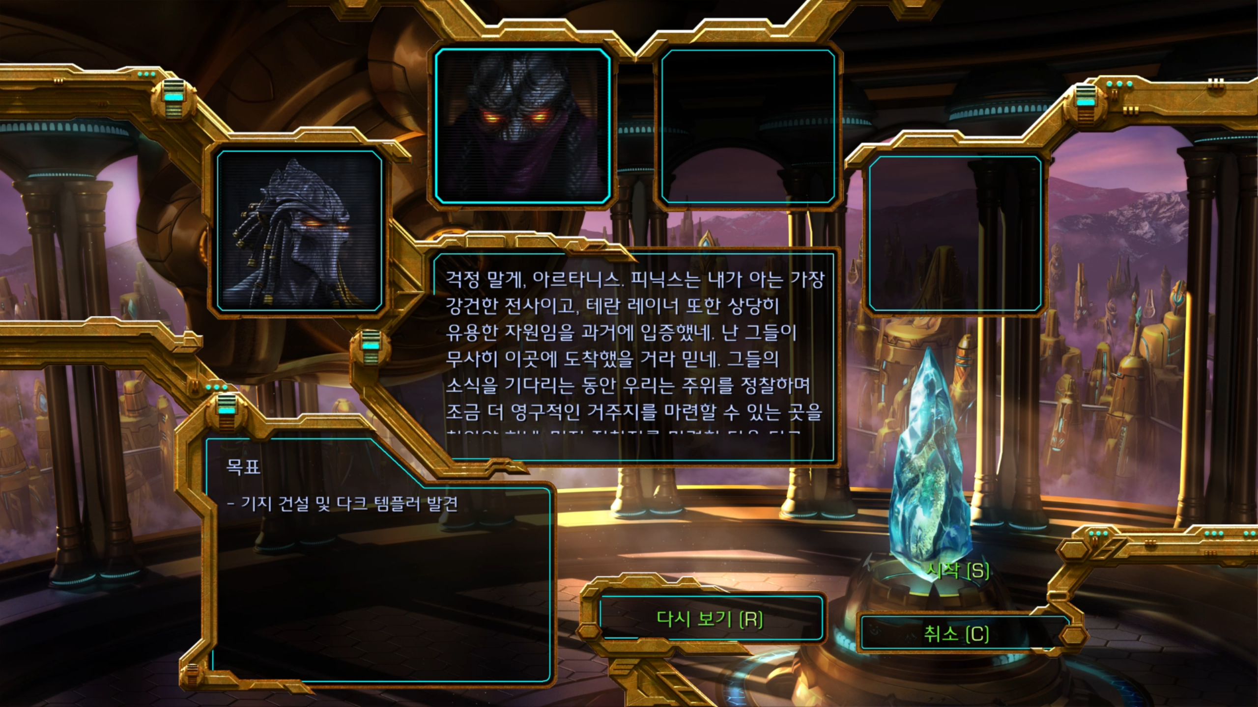 프로토스의 두 번째 미션입니다. 이번 미션은 샤쿠라스에서 시작합니다.