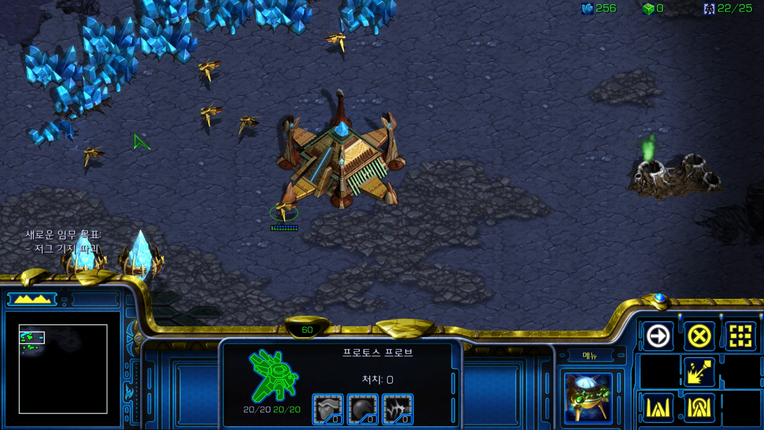 저그 기지 파괴라는 새로운 목표가 생겼습니다.