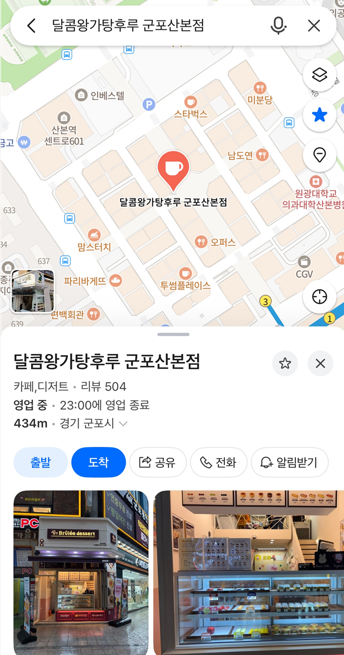 우선 네이버지도 기준, 두바이 쫀득쿠키를 검색하면 산본역에는 3군대가 뜹니다.