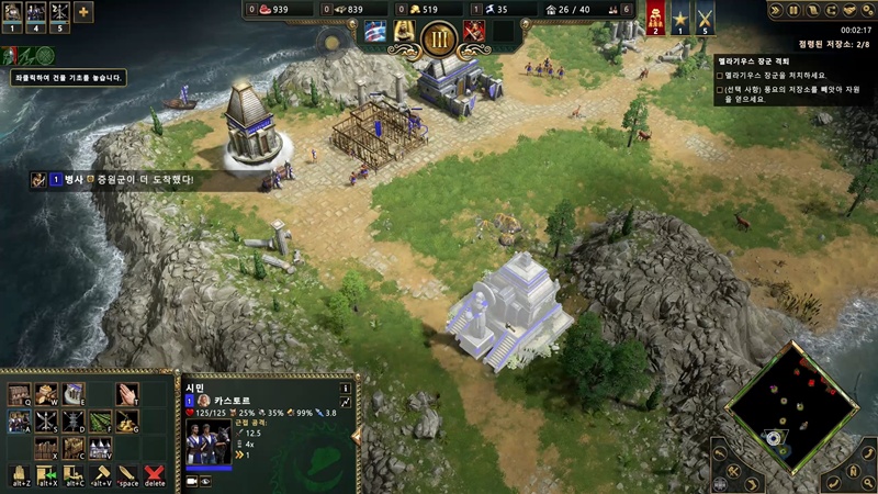 없는 살림으로 기지를 꾸리다 보면 신전에서 증원군이 나옵니다.
