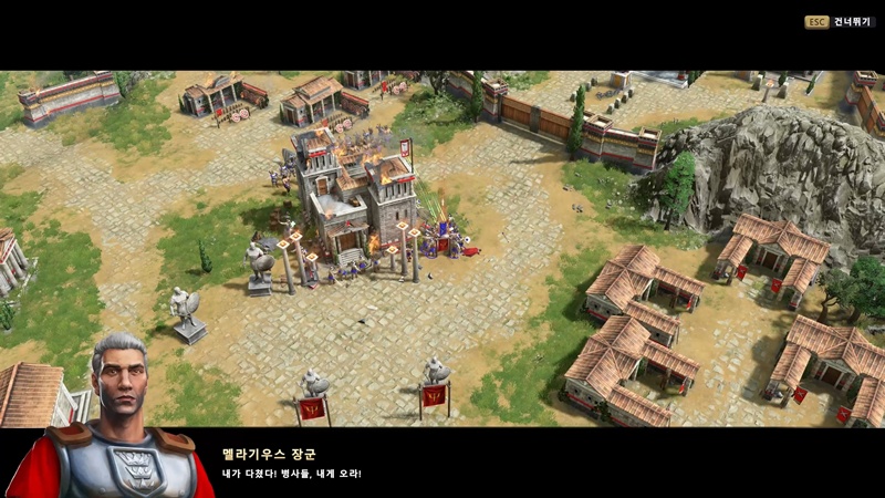 아까의 전투에서 도망친 그리스군이 멜라기우스 장군에게 상황을 보고하고 있습니다.
