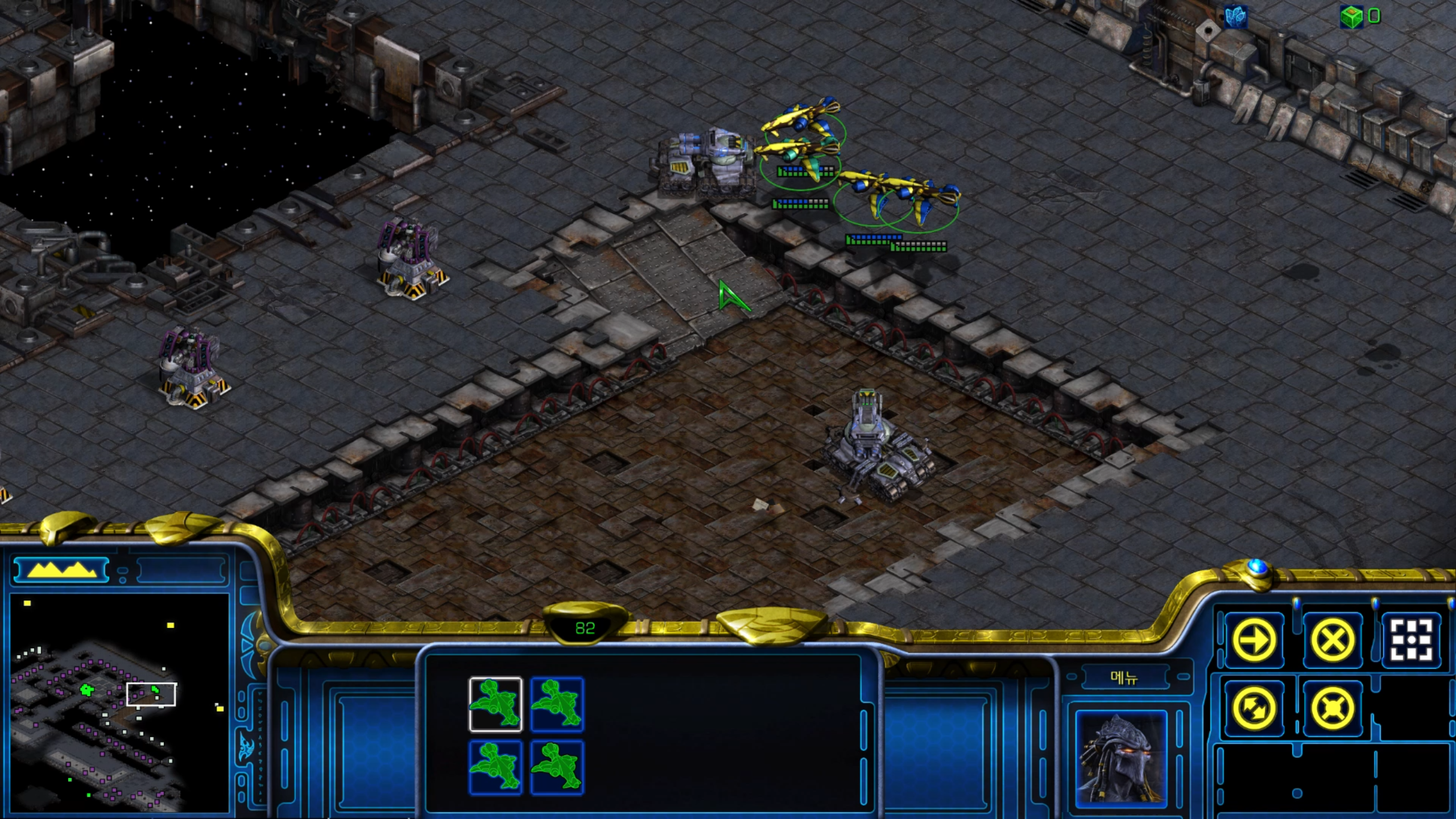 또 다행히 방어가 별 볼일 없습니다. 일단 지상 유닛이 안 보이네요.