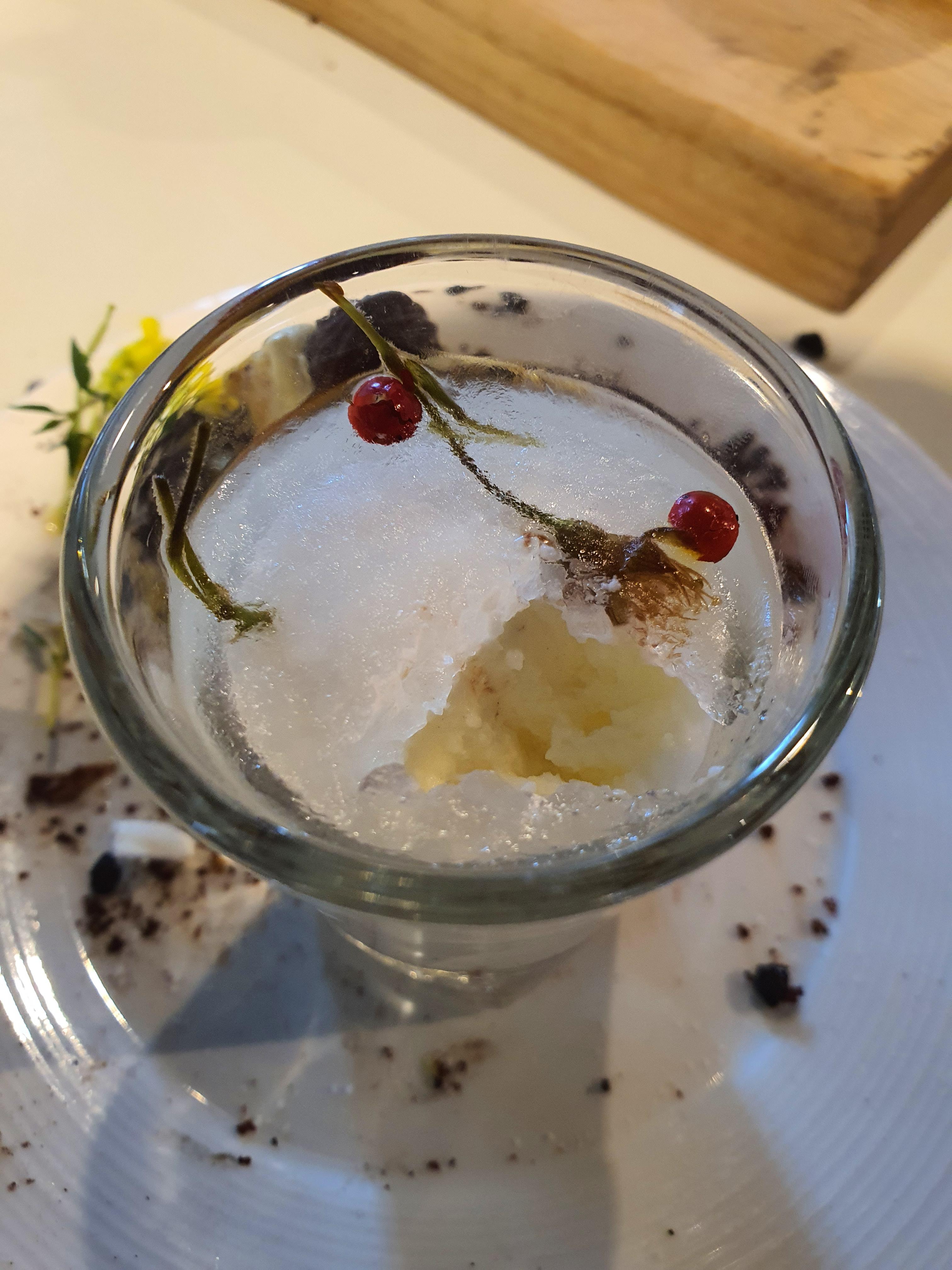 셔벗이라고 하나요? 셔벗에 크림이 올라간 디자인적으로는 예쁜데 맛은 살짝 달지 않았나 생각합니다.