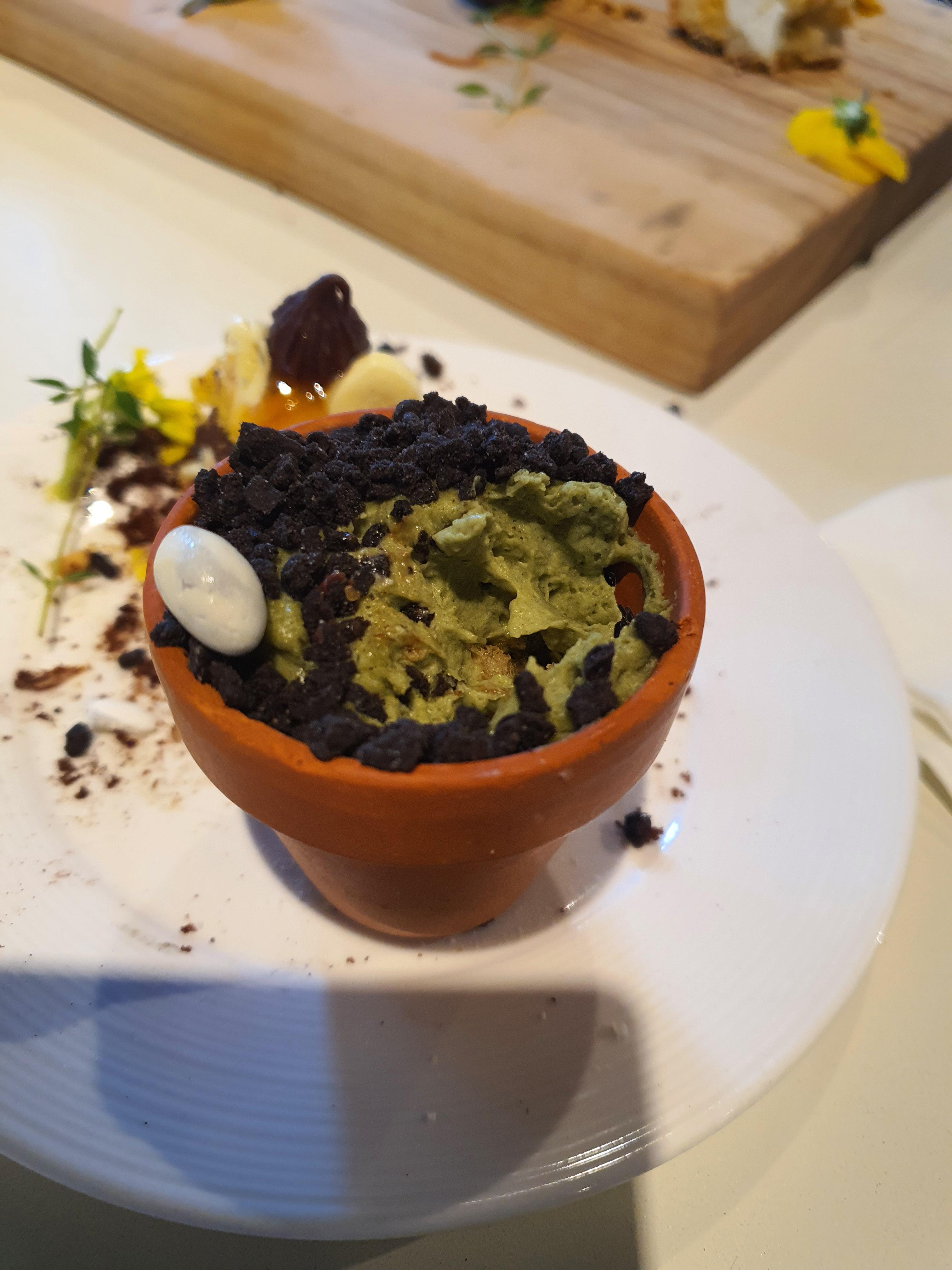 화분을 파내면 녹차맛 크림이 나옵니다. 녹차를 안 좋아해서 유일하게 남긴 디저트입니다.