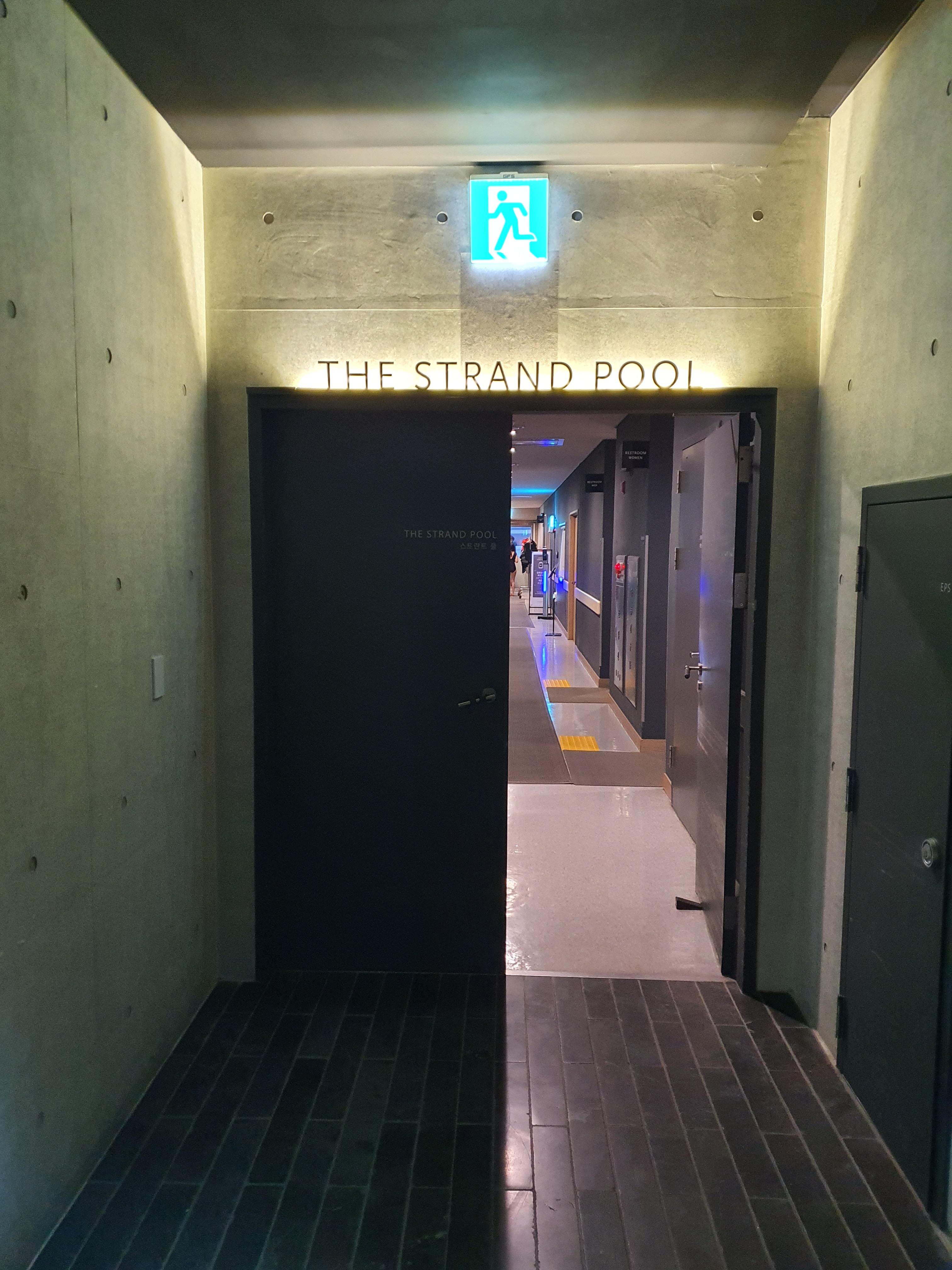 이 문을 지나면 수영장입니다. 3층에 있는 줄 알았는데 로비층 카운터 뒤편에 있습니다.
