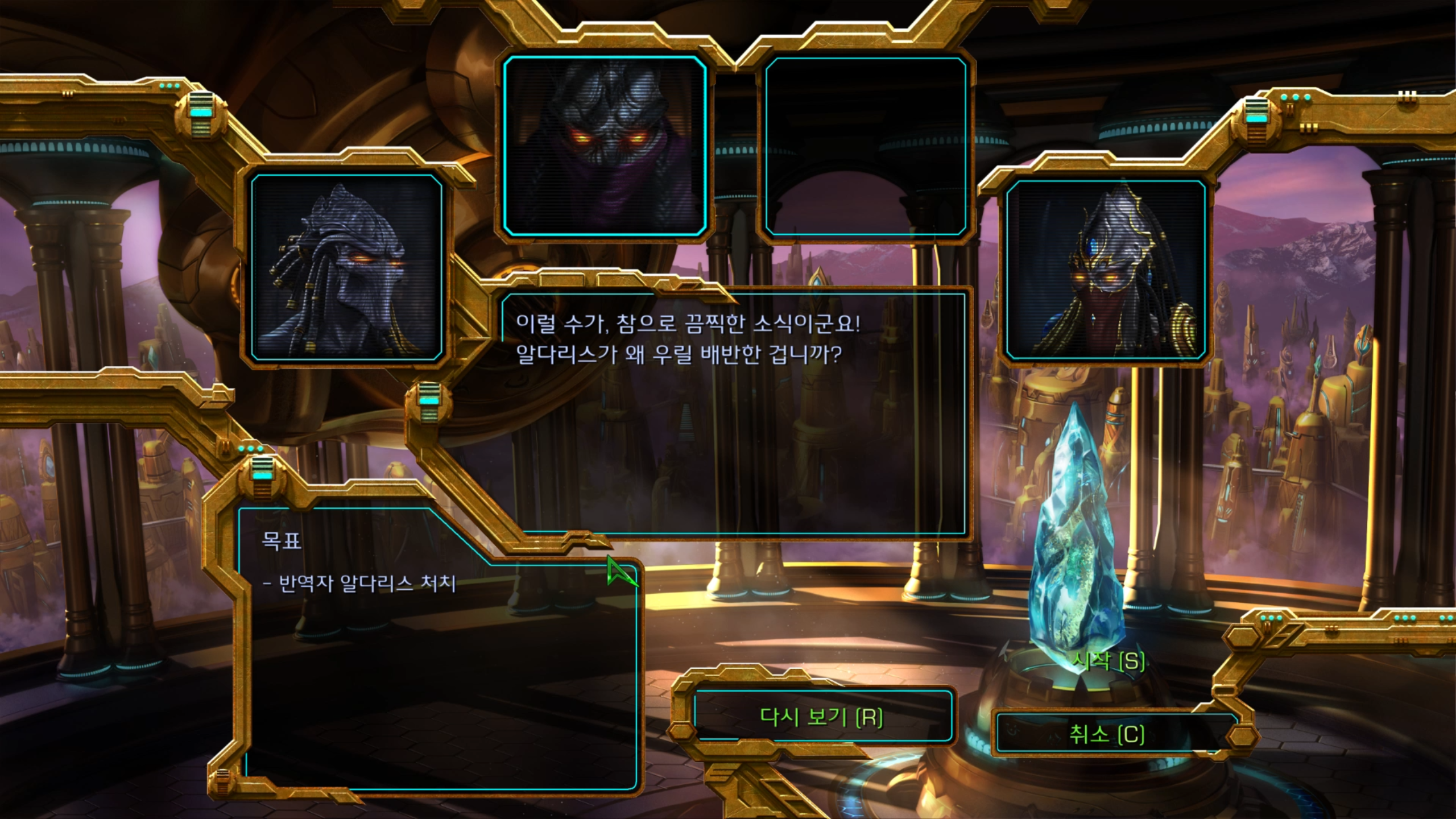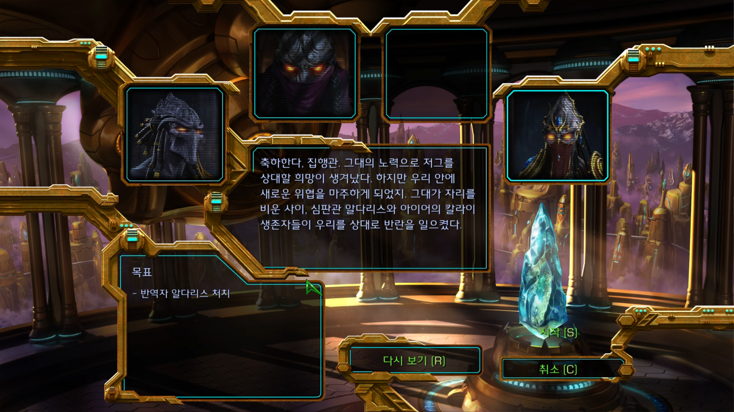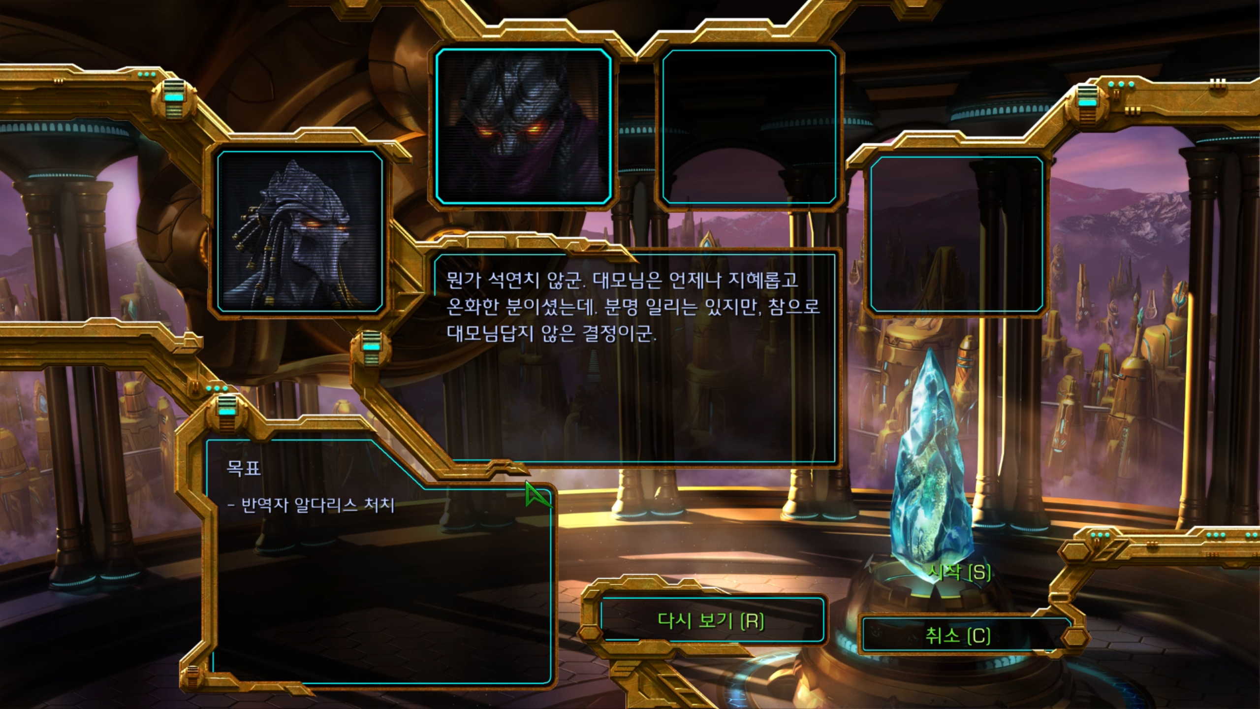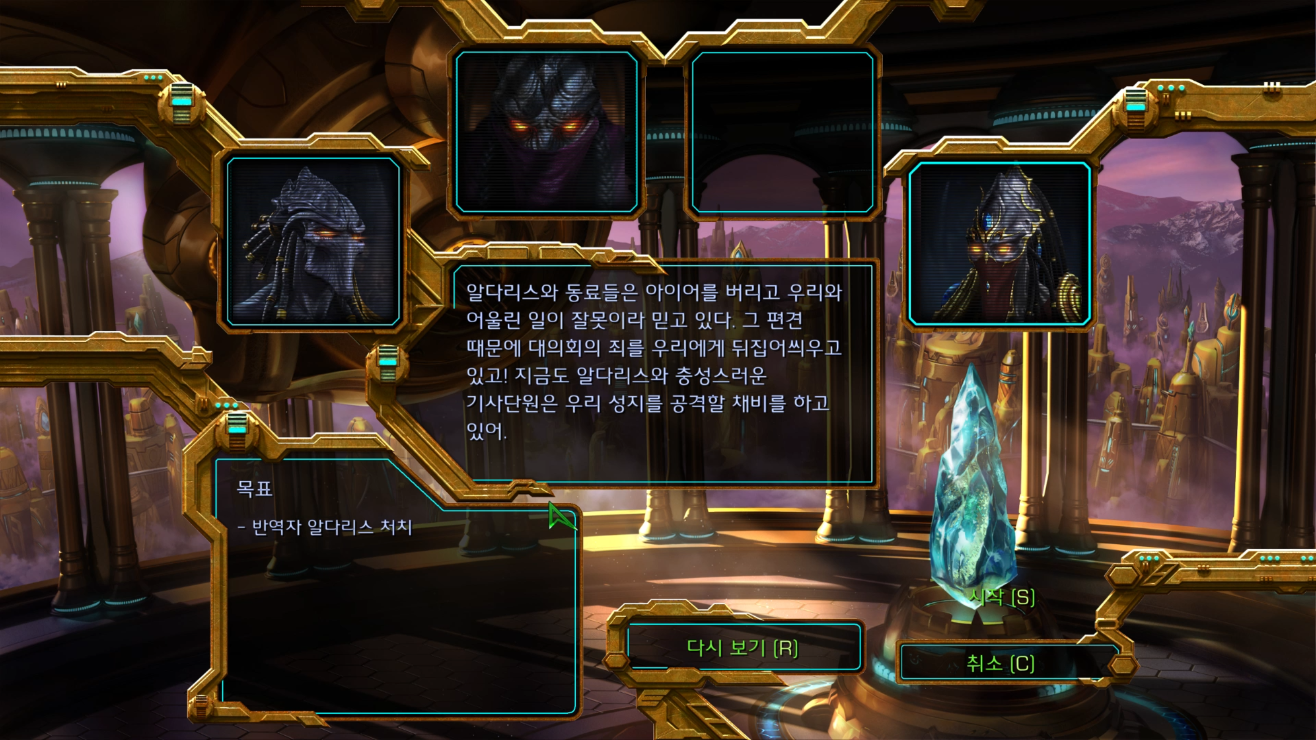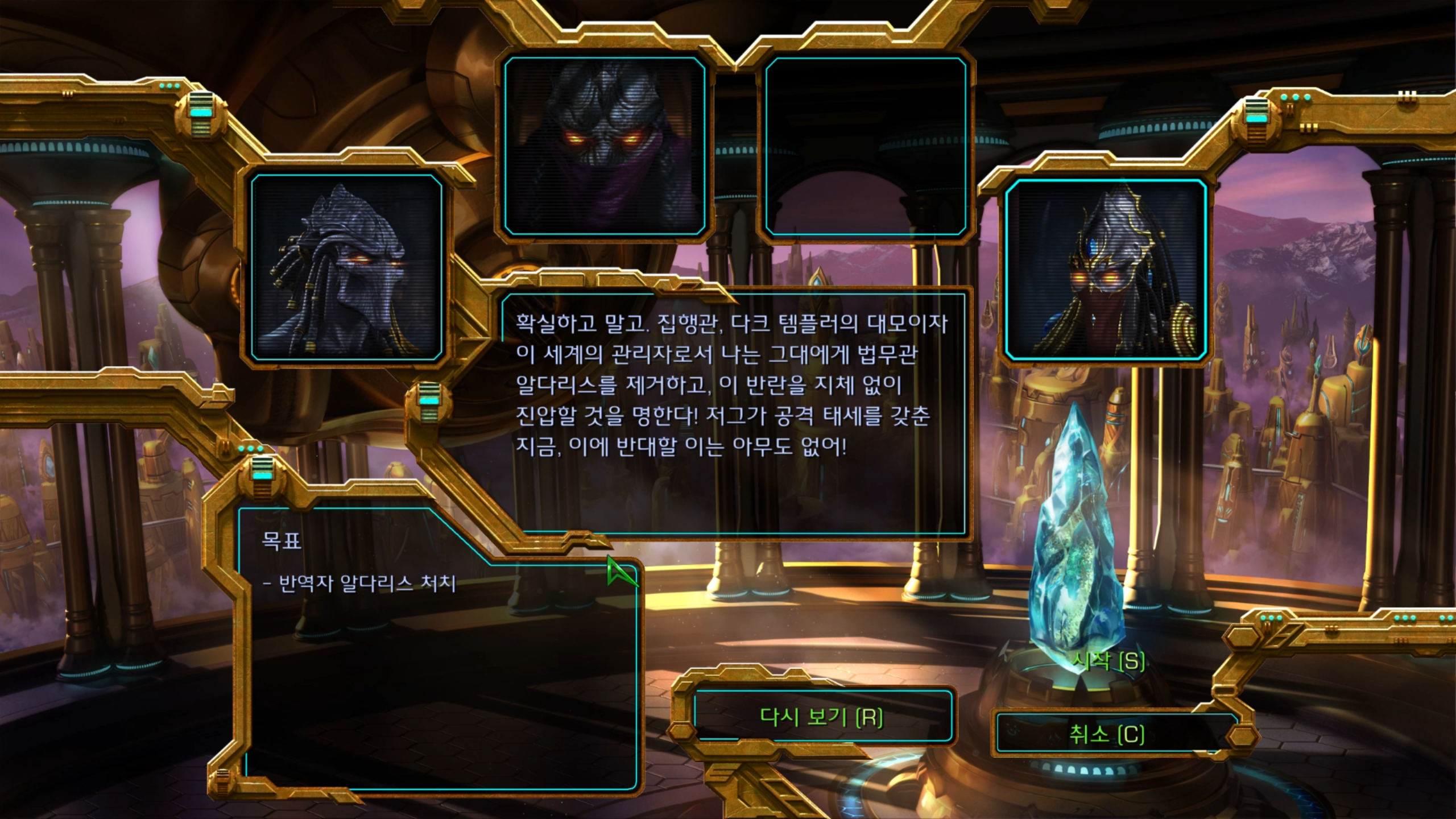이번 미션은 내전이군요. 이번 미션에서는 템플러와 아비터를 사용할 수 없습니다.