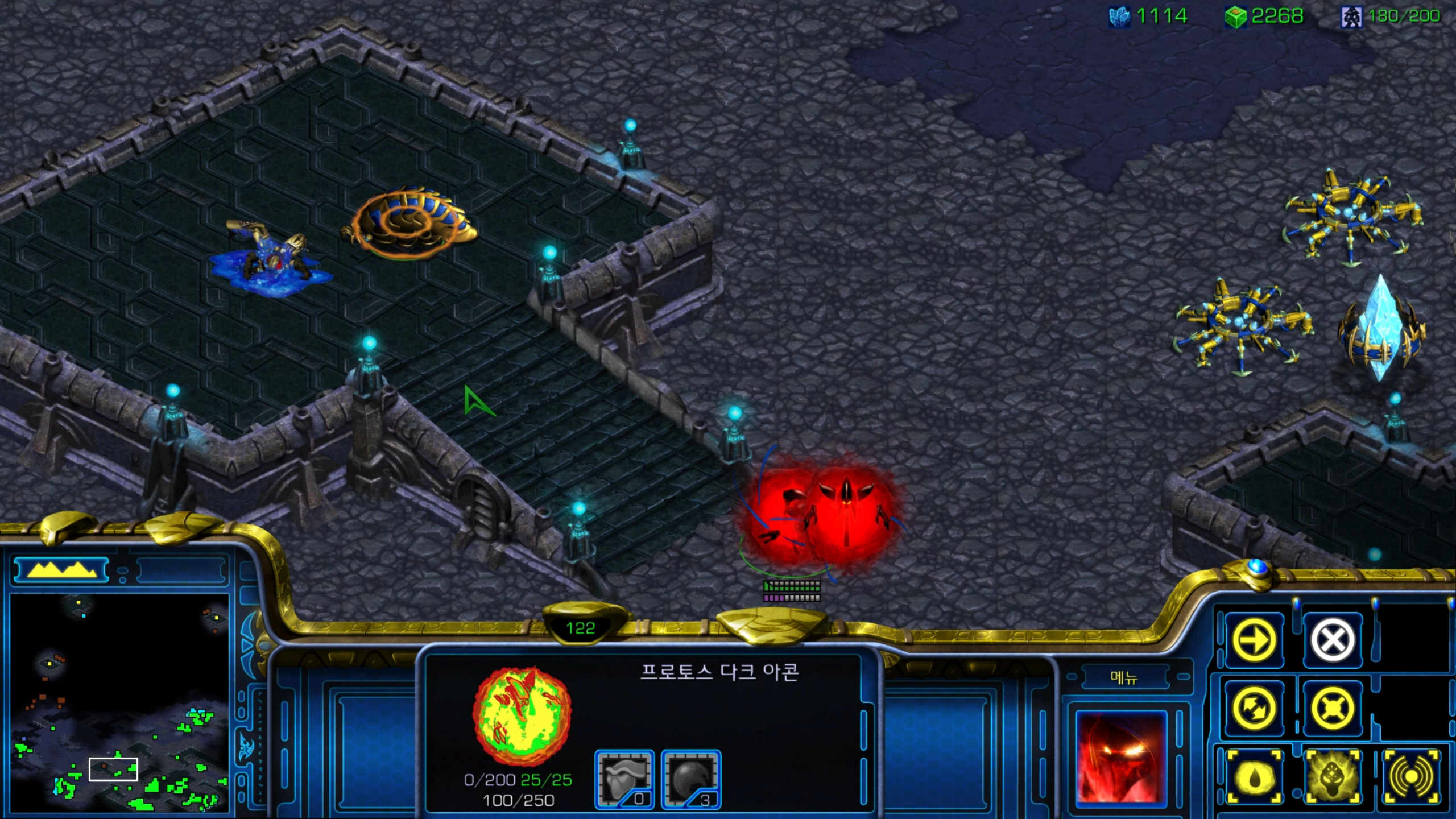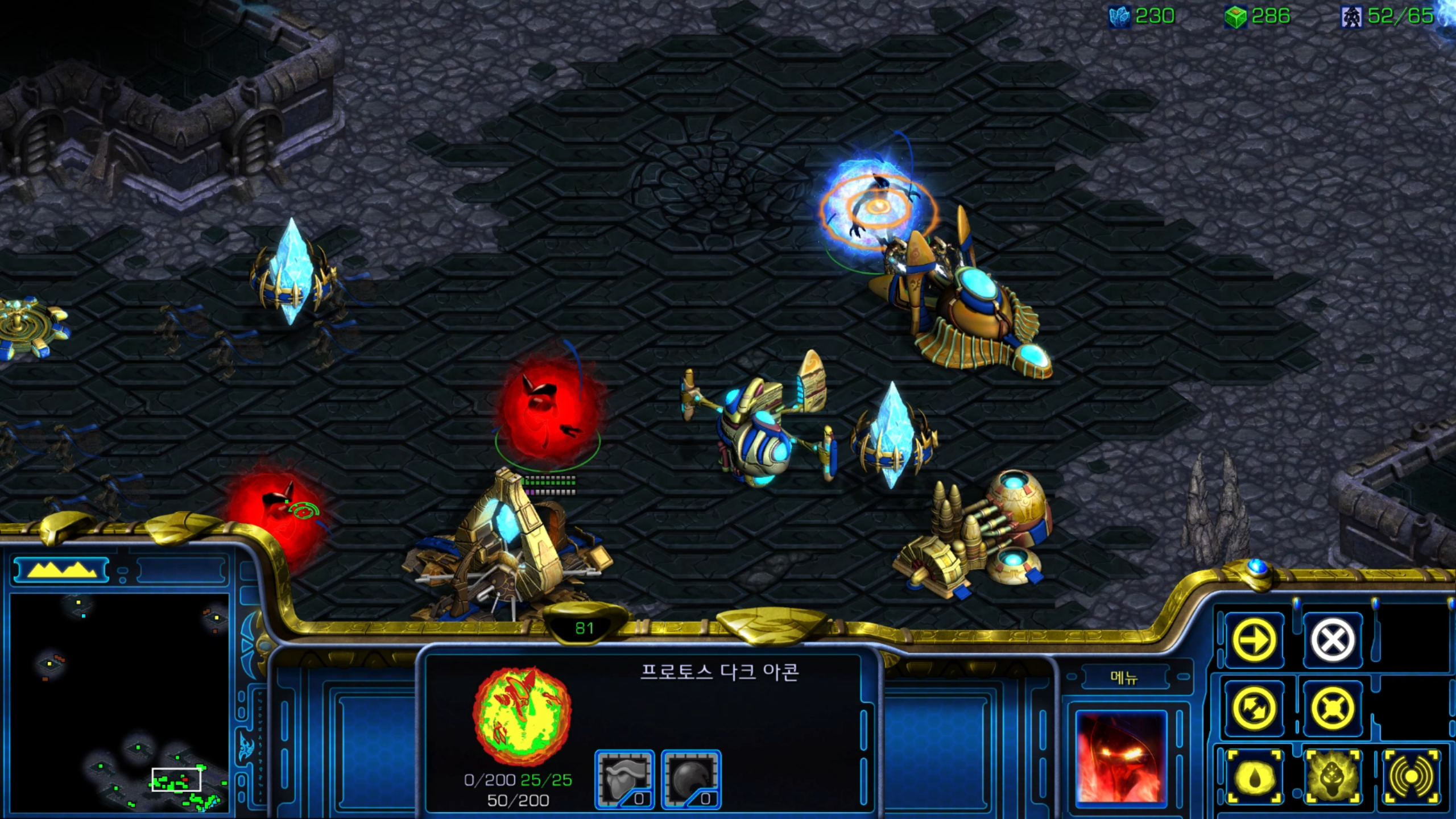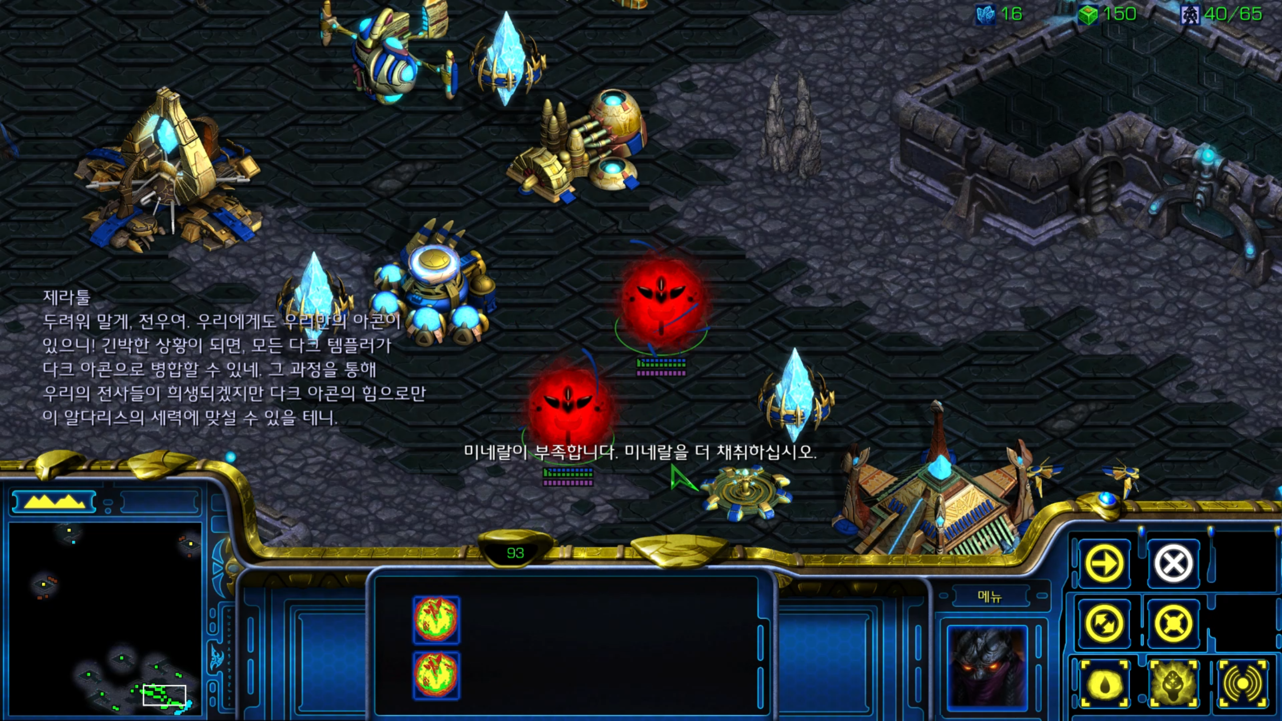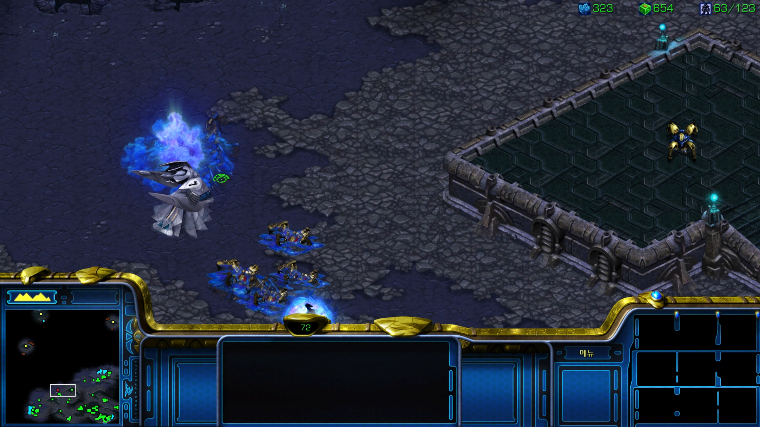 하이템플러만 못 쓰는 모양이네요. 다크아콘 두기가 있습니다. 마인드 컨트롤만 잘 쓰면 방어병력 없이 방어가 가능할 것 같습니다.