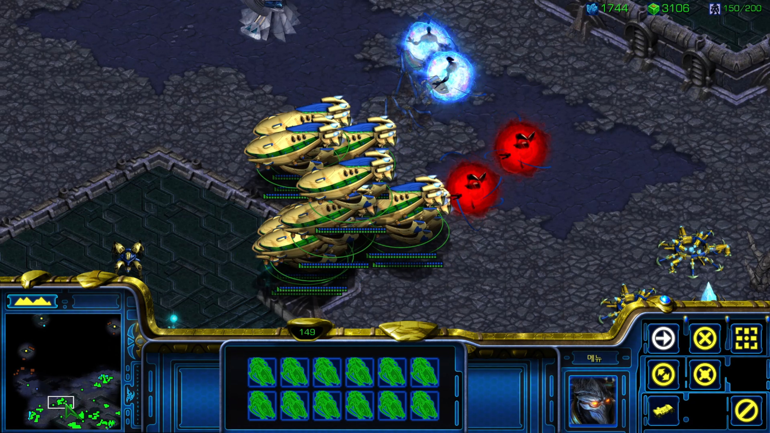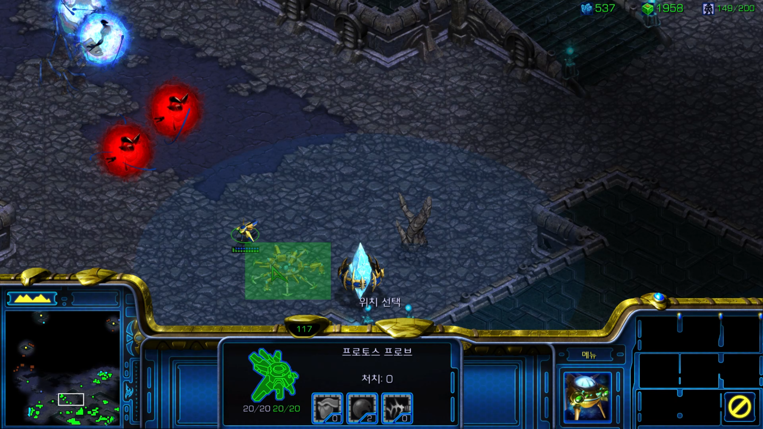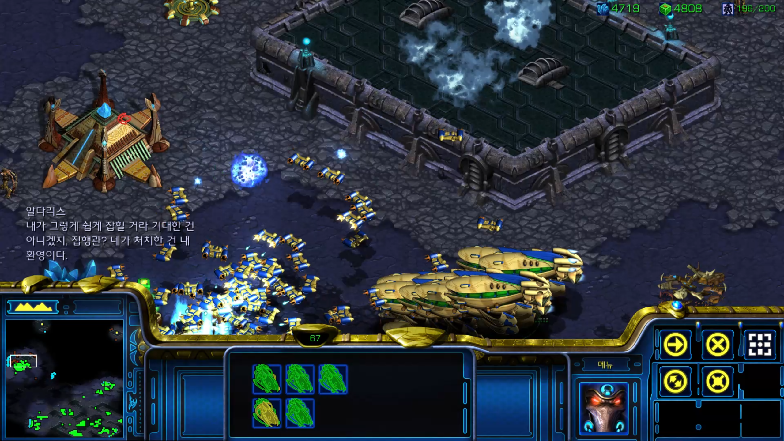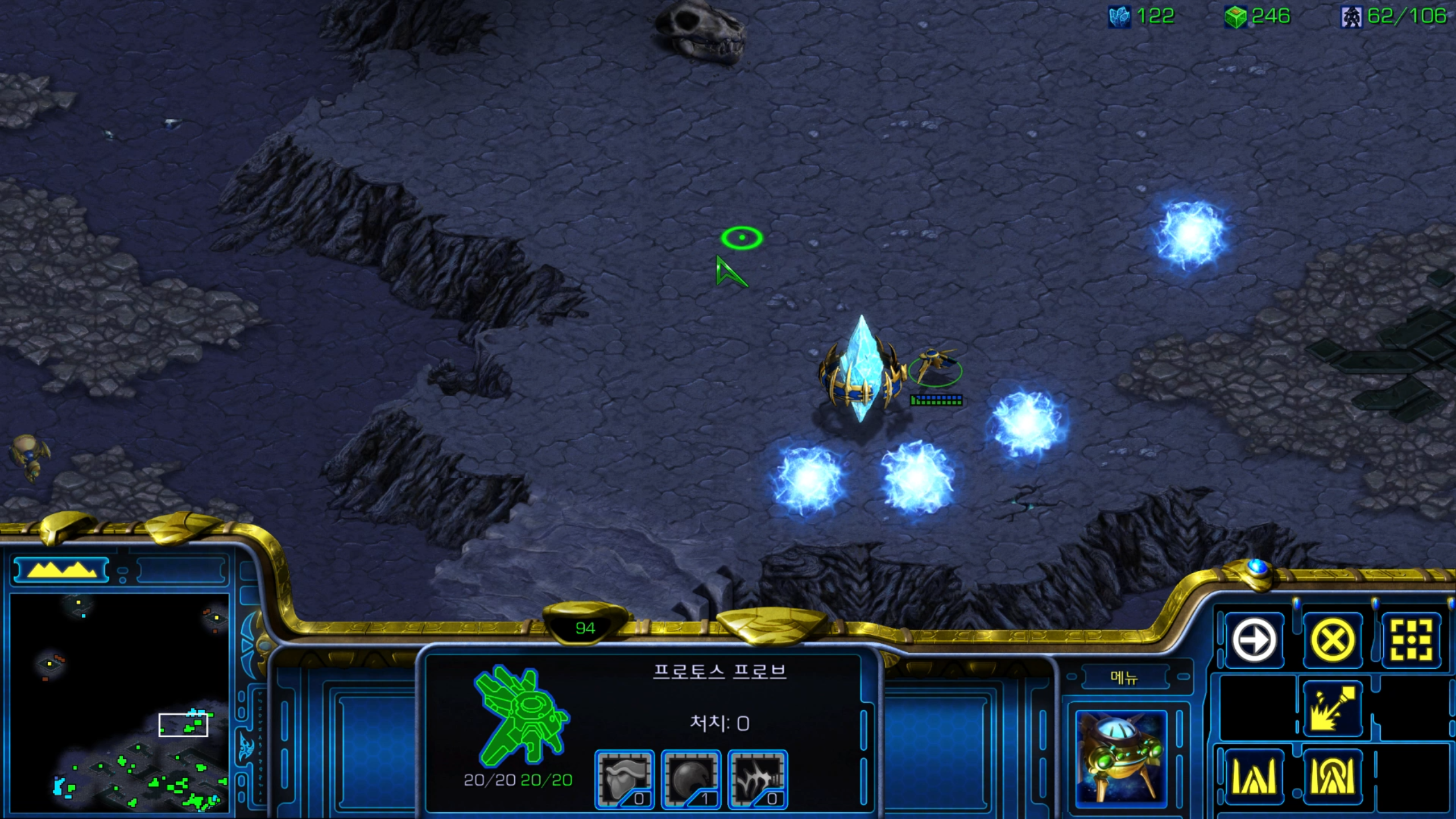 하이템플러만 못 쓰는 모양이네요. 다크아콘 두기가 있습니다. 마인드 컨트롤만 잘 쓰면 방어병력 없이 방어가 가능할 것 같습니다.