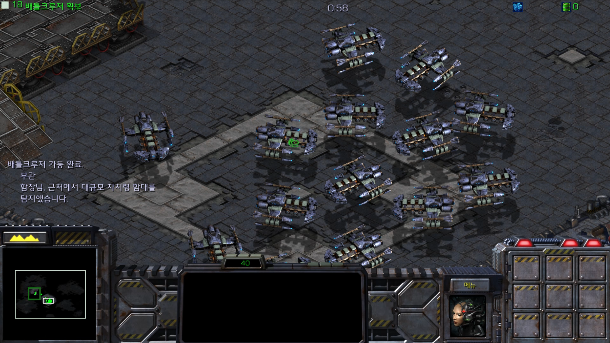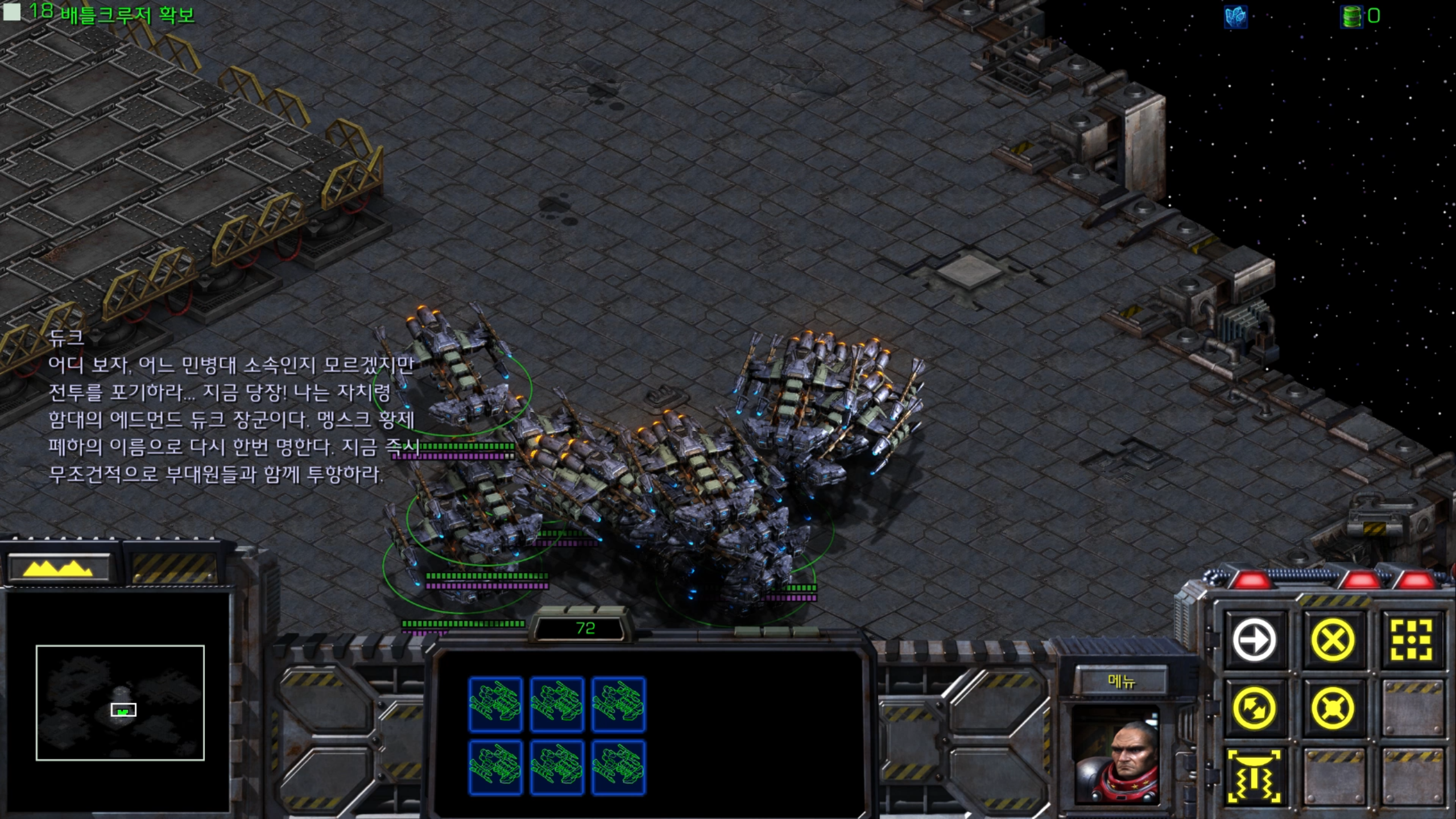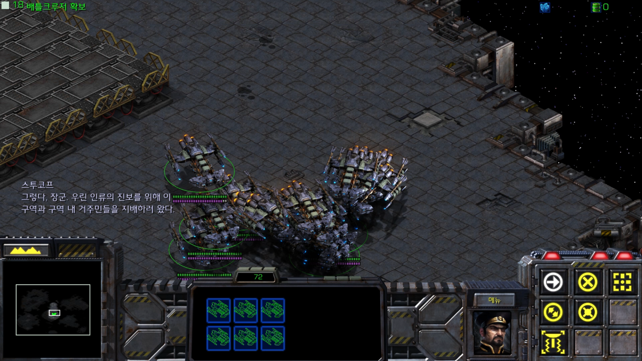 이 지역까지 클리어하면 배틀크루저가 18대가 모입니다.