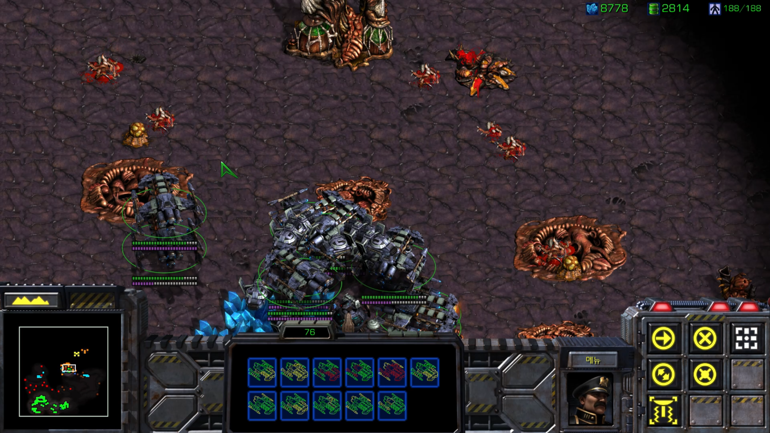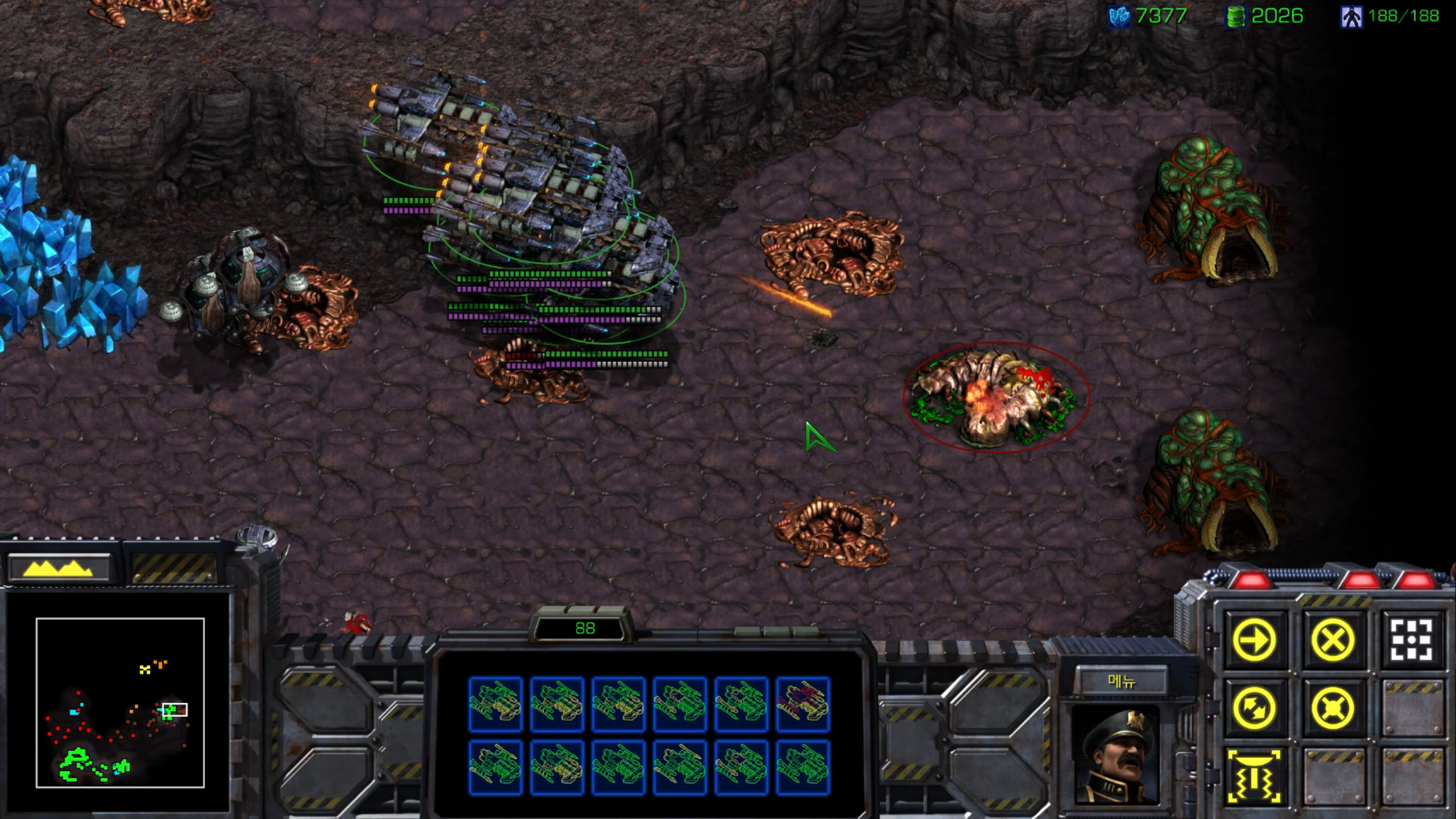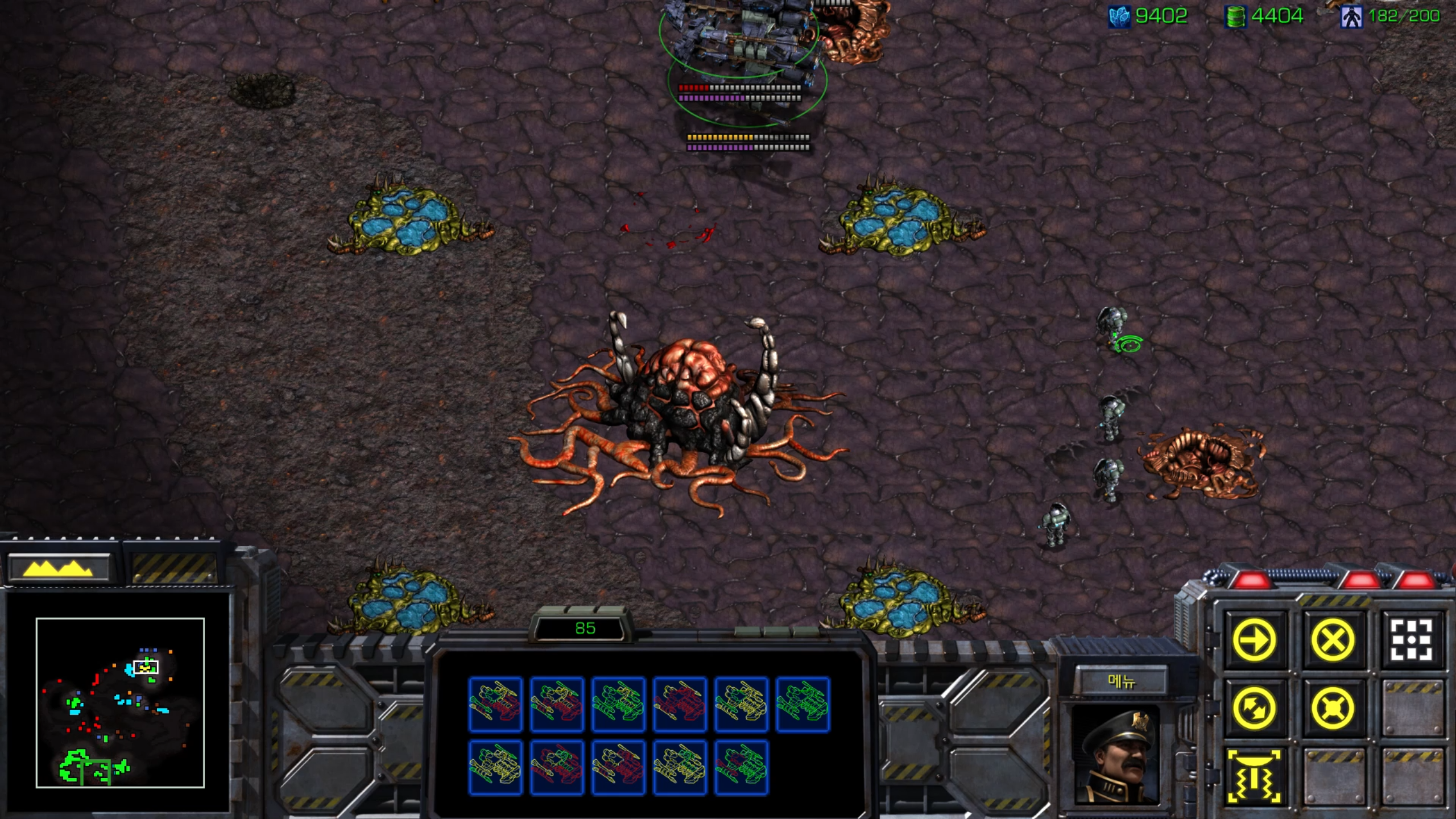 배틀크루저가 모였으니 일단 성가신 성큰콜로니를 없애러 빨간 정신체를 파괴하러 가보겠습니다.