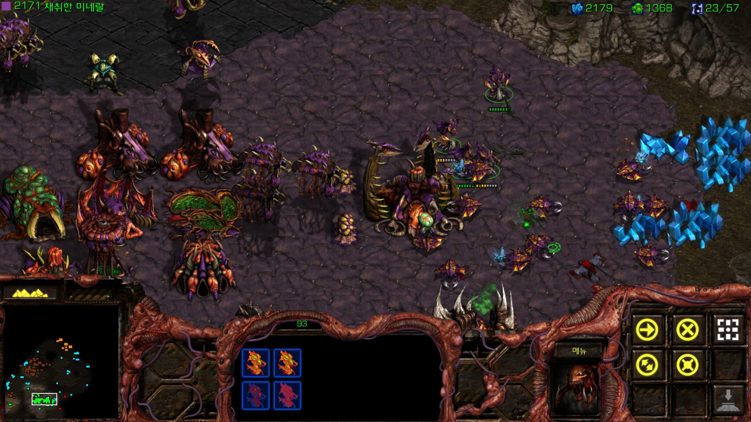 적들이 꾸준히 드랍십을 통해 병력을 내리기 때문에 드랍십도 없애버릴 겸 히드라 위주로 병력을 올렸습니다.