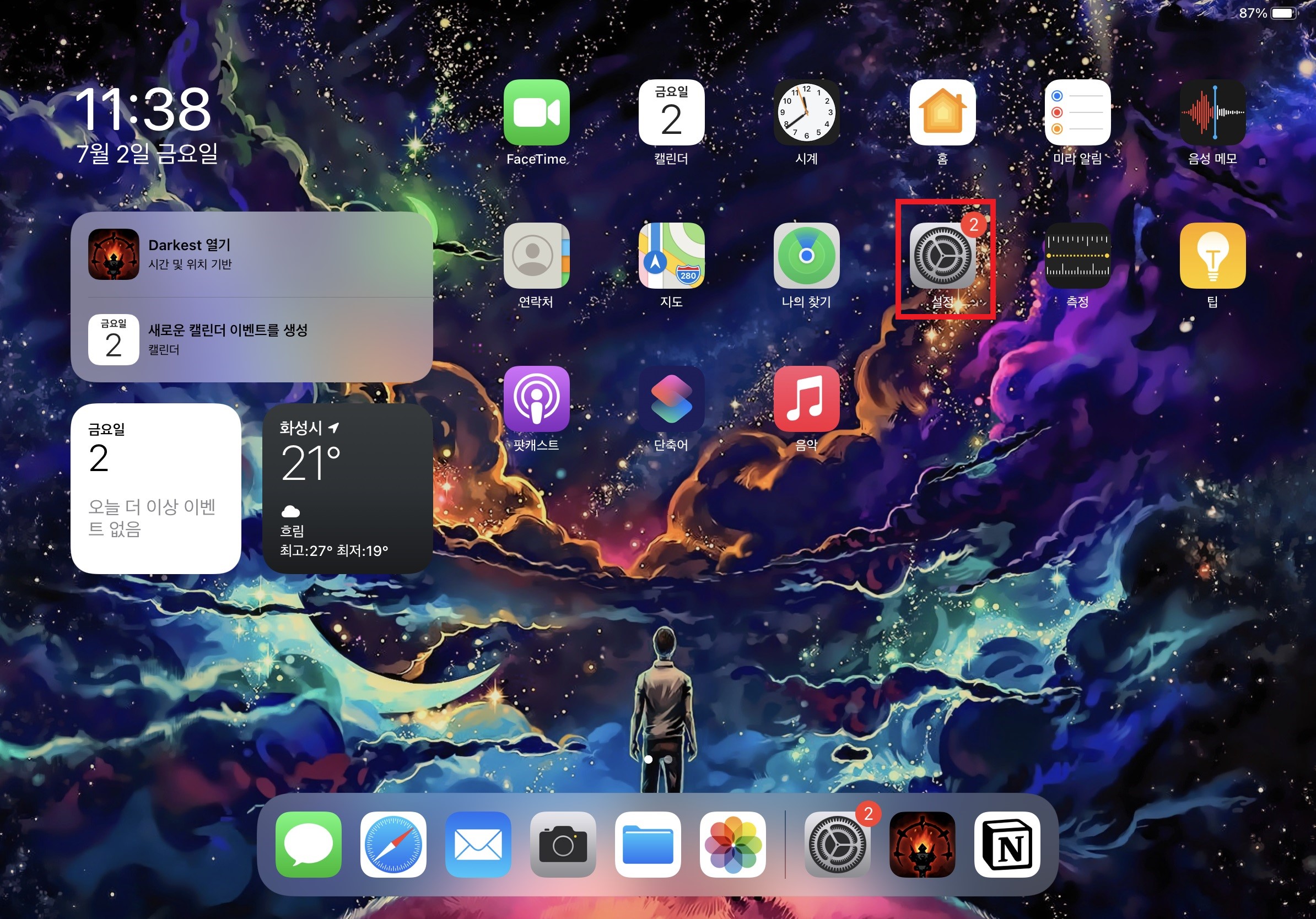 먼저 아이패드에서 설정 메뉴에 들어가 줍니다.