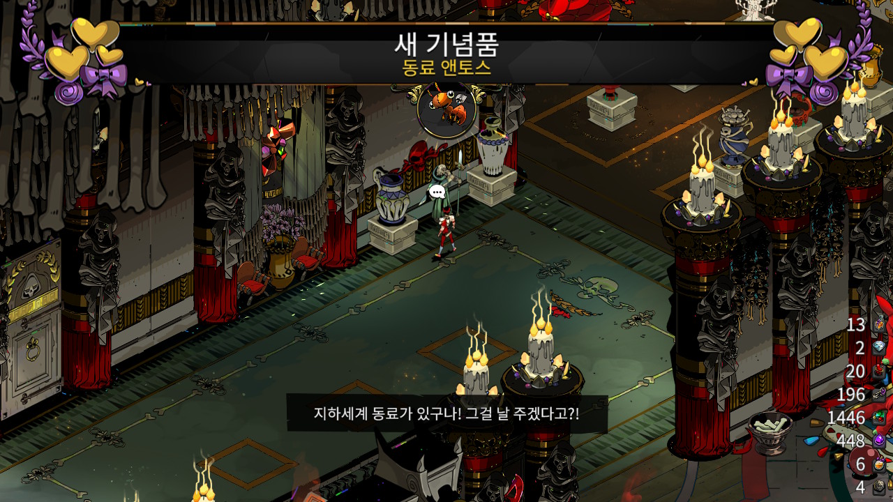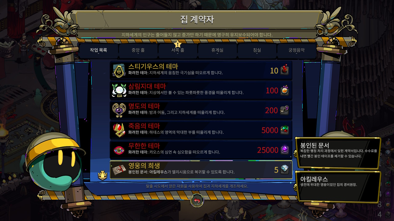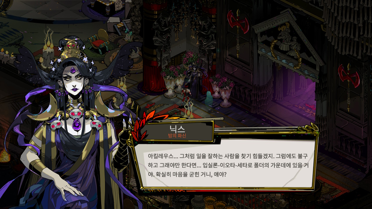 그렇게 둘 사이를 중재를 해가면 이야기를 하다 보면 아킬레우스가 하데스와 맺었던 규약을 자그레우스에게 풀어달라고 요청합니다.