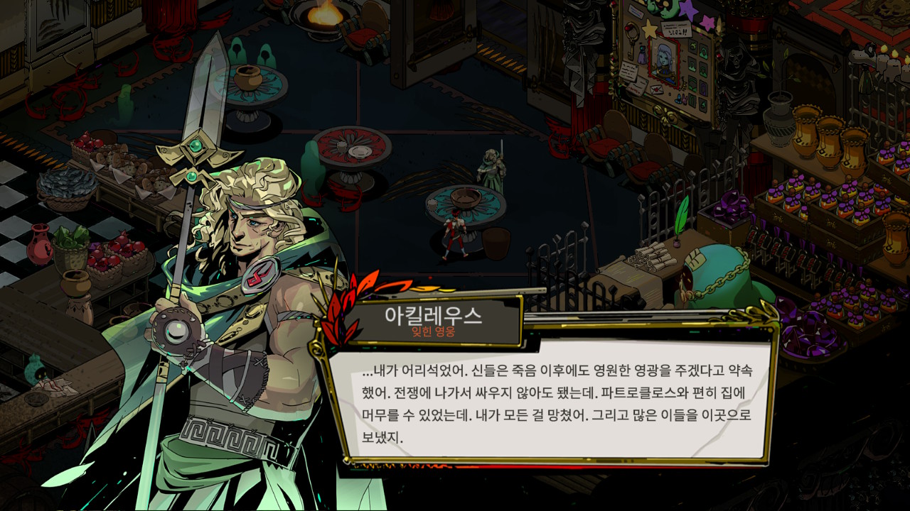 이후 명도에서 아킬레우스와 대화하면 그가 크나큰 만족감을 느끼는 걸 확인하실 수 있습니다.