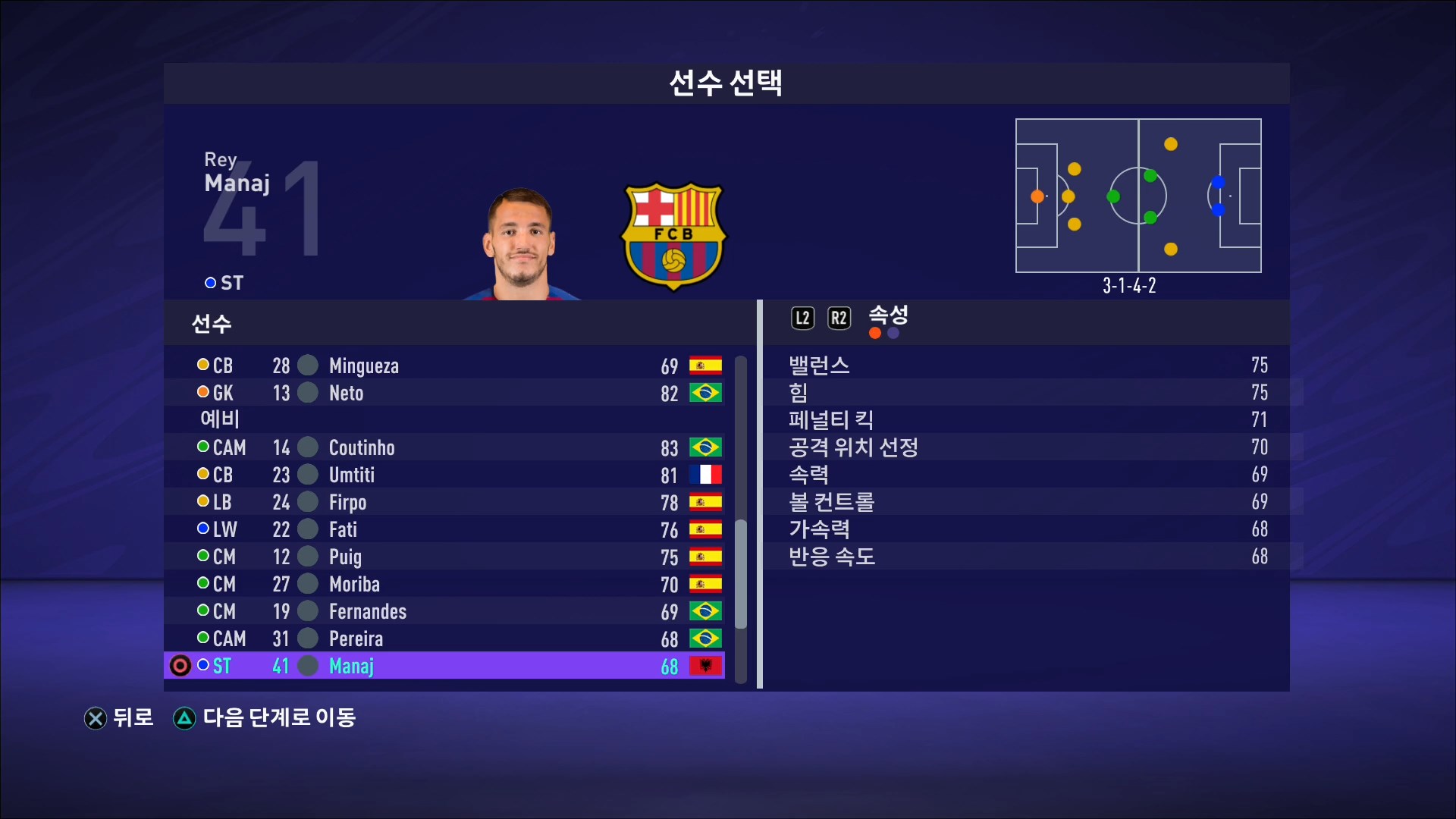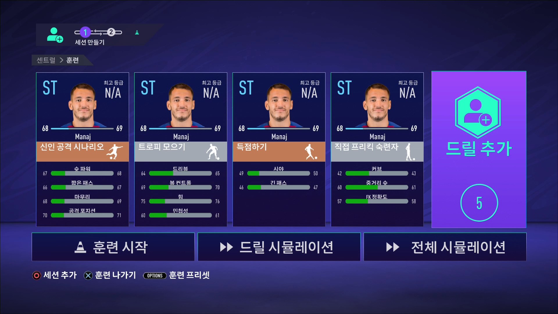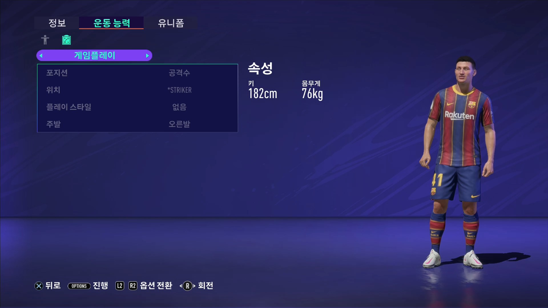 스트라이커로 분류가 되어 있어서 그런지 패싱이나 드리블은 신규 선수보다 느낌이 좀 둔탁한 것 같습니다.