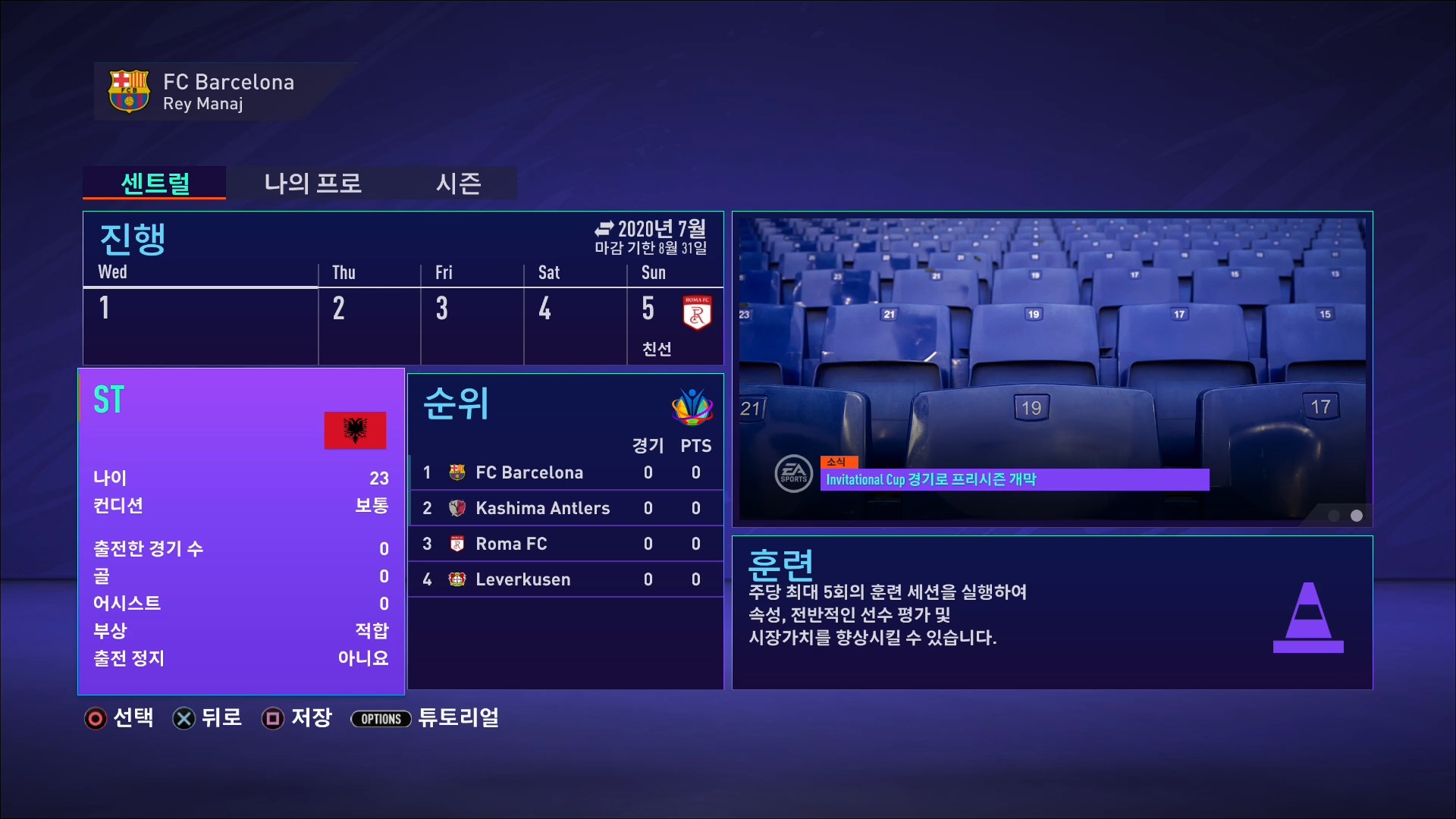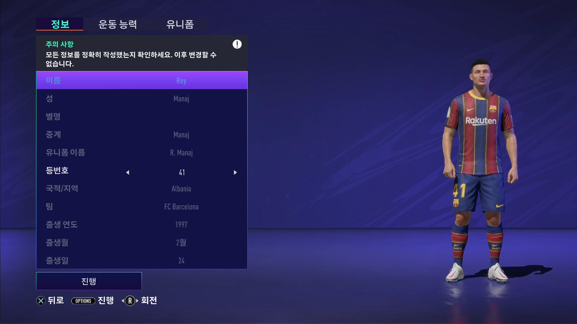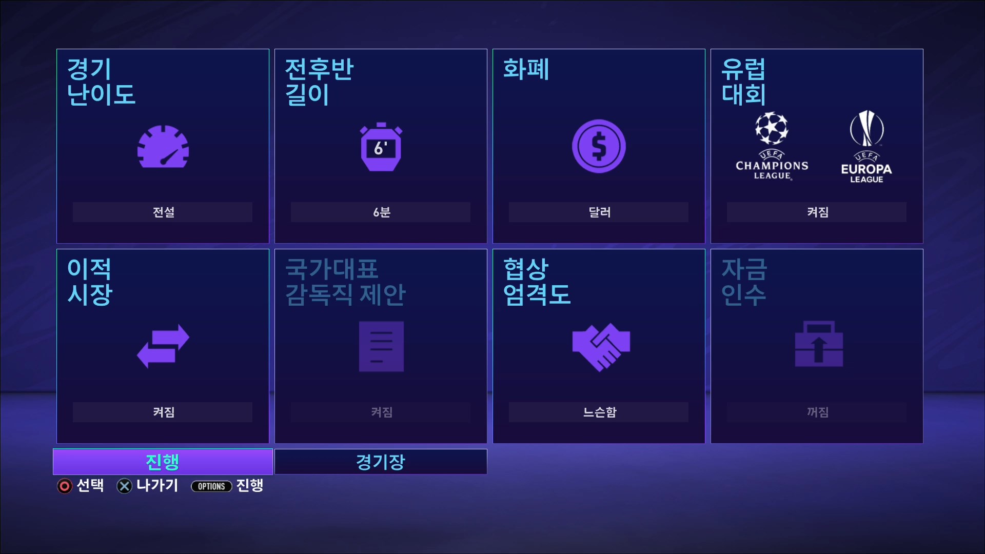 [피파21] 커리어 신규 선수 모드 - 시작 전 세팅 및 메뉴